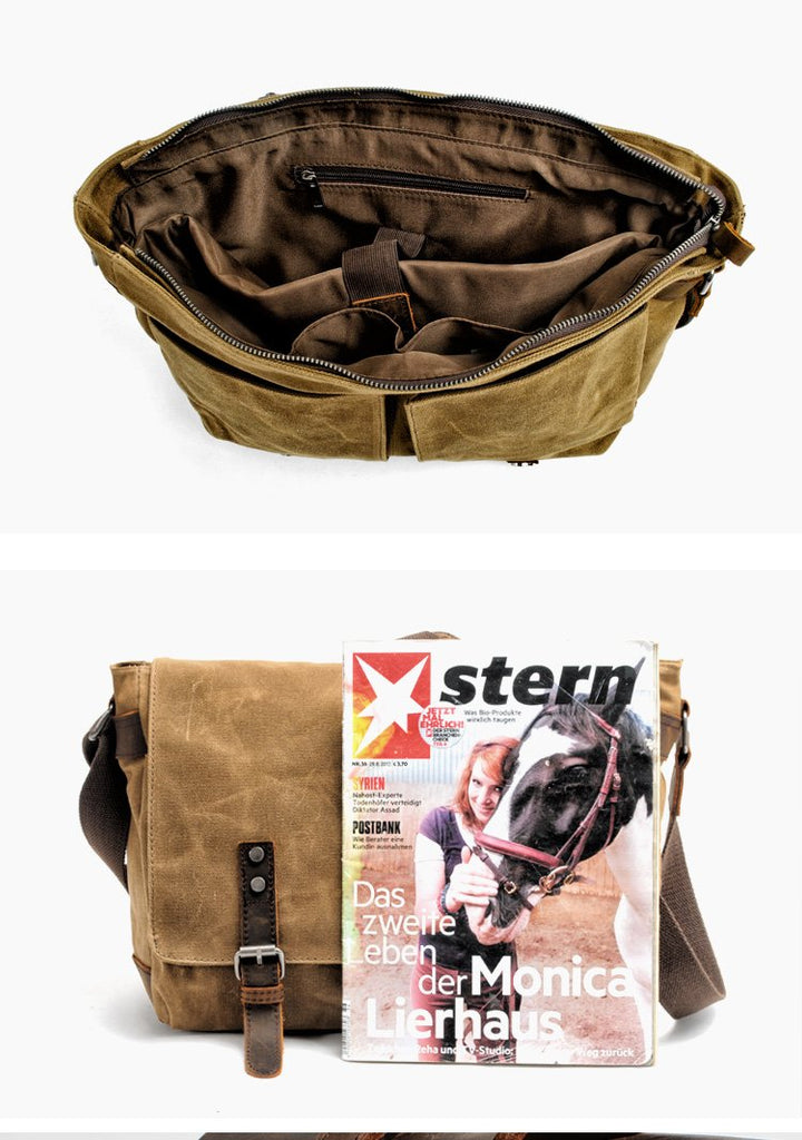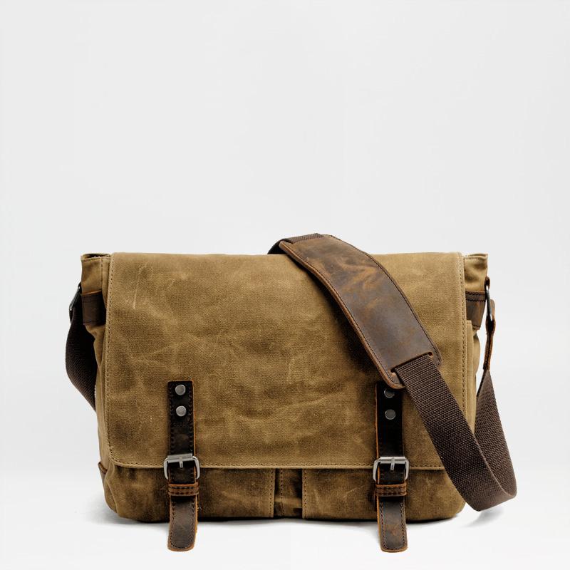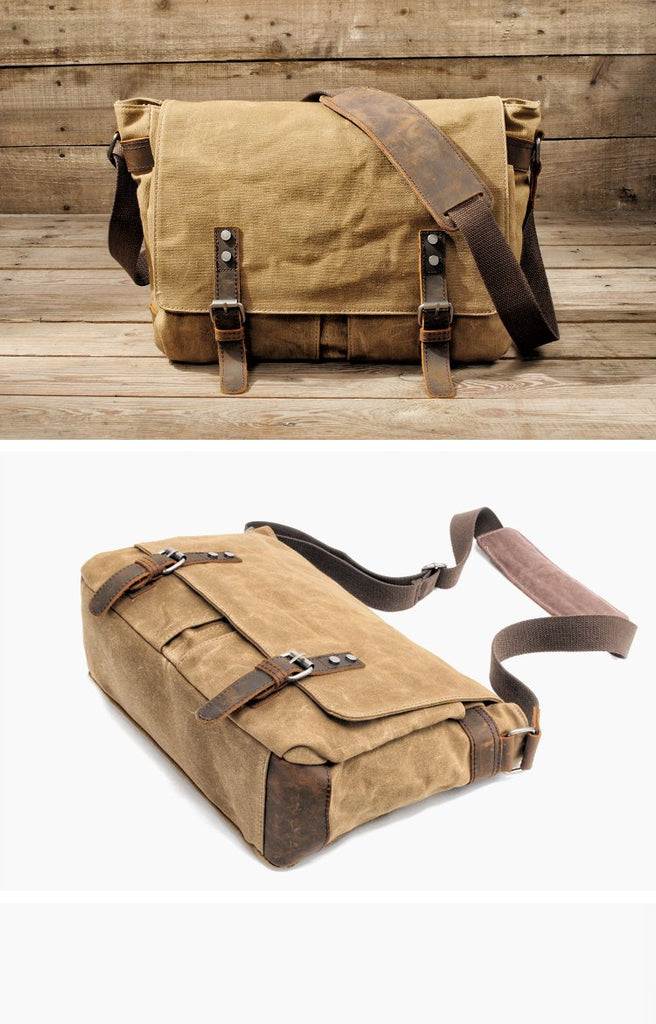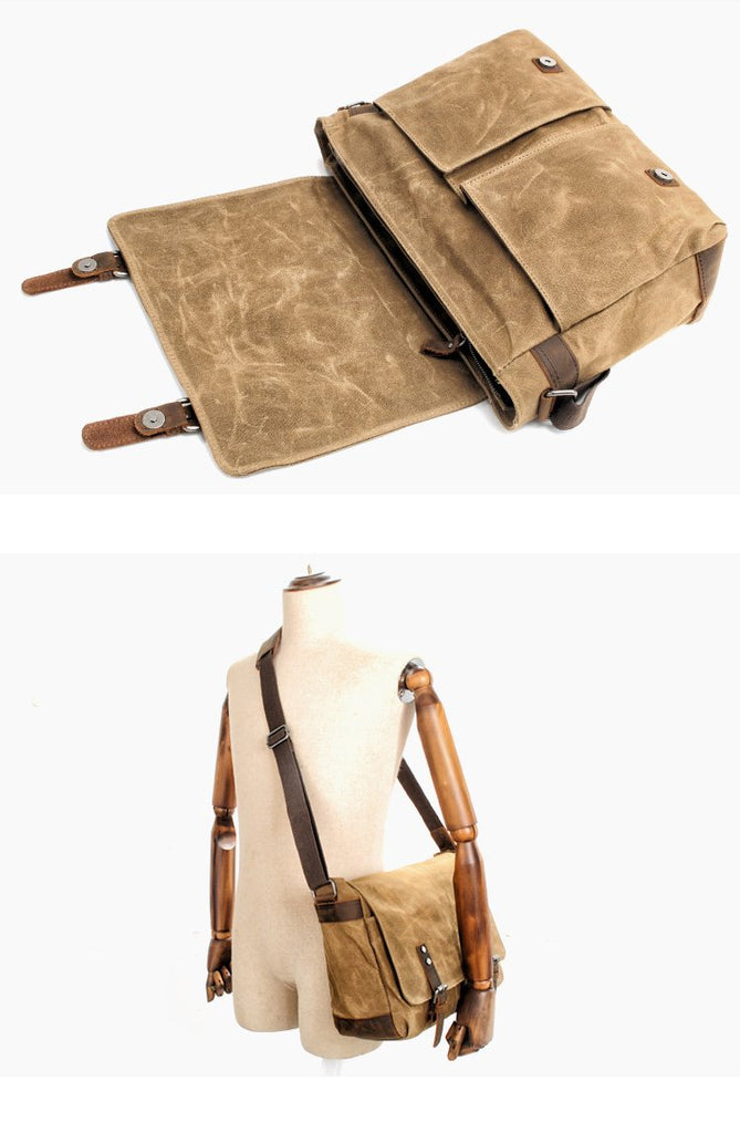 Design: Waxed Canvas Leather Mens Waterproof 14‘’ Computer Side Bag Messenger Bag For Men