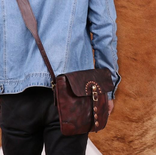 Design: Cool Mens Leather Country Side Bag Small Saddle Messenger bag Shoulder bag For Men