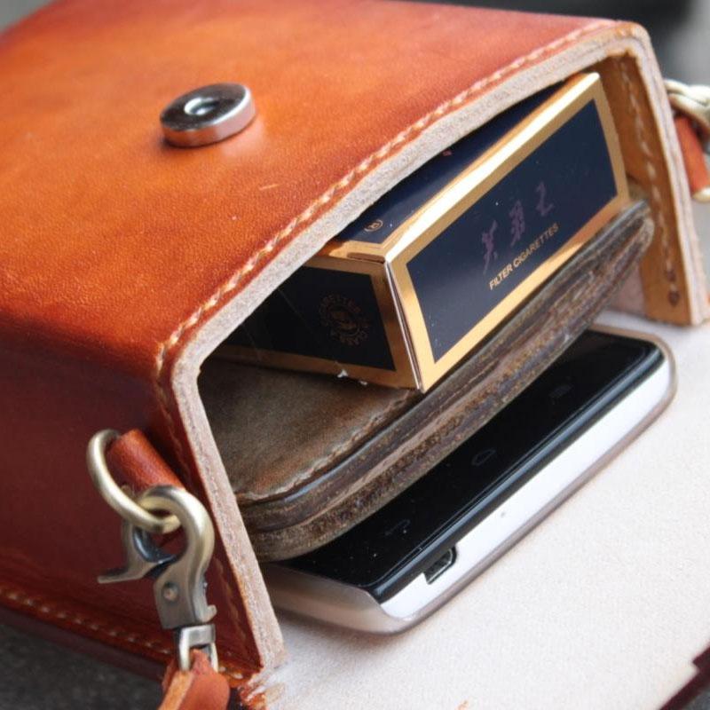 Style: Handmade Cigarette Bag Phone Bag Leather Mens Box Bag Small Shoulder Bag for Men
