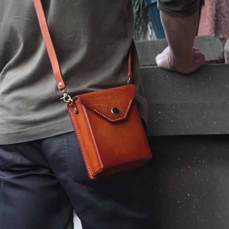 Design: Handmade Cigarette Bag Phone Bag Leather Mens Box Bag Small Shoulder Bag for Men