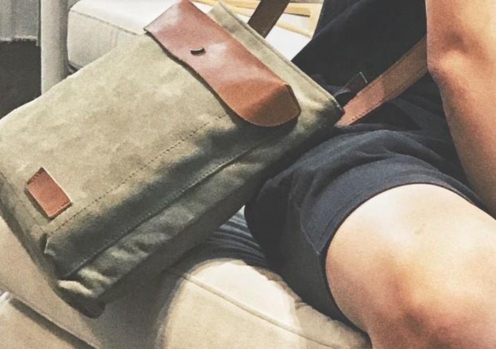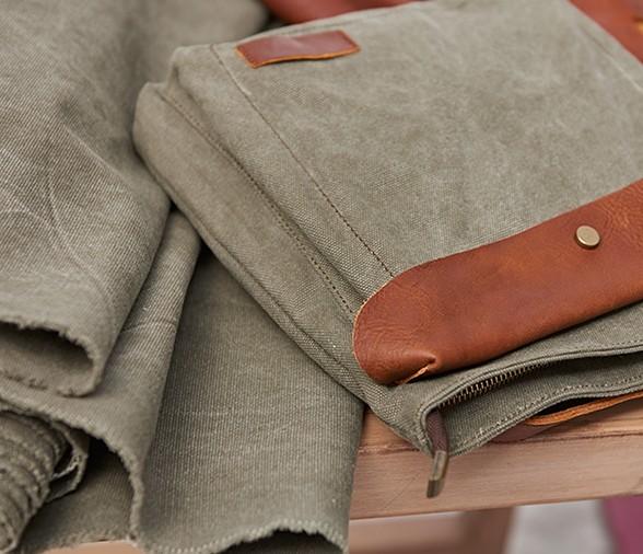 Design: Mens Canvas Leather Square Side Bag Messenger Bag Canvas Shoulder Bag for Men