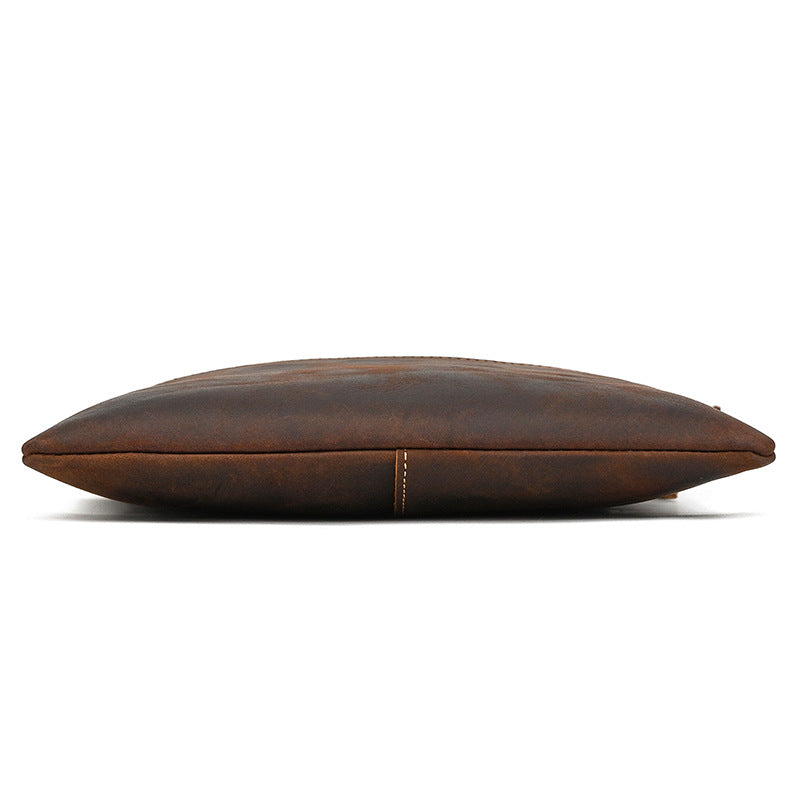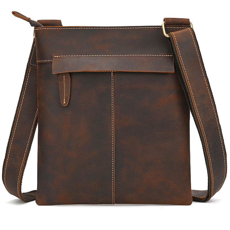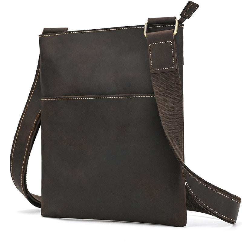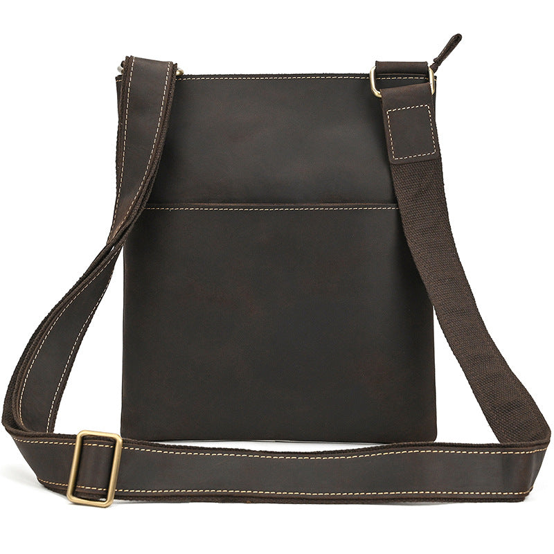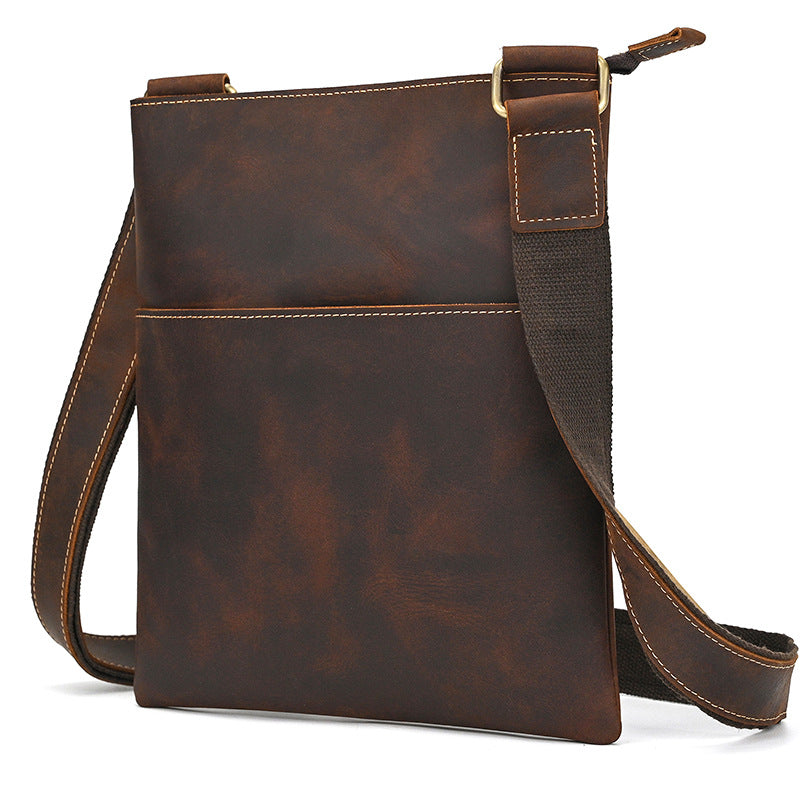 Slim Vertical Messenger Bag for Men - Premium Crazy Horse Leather