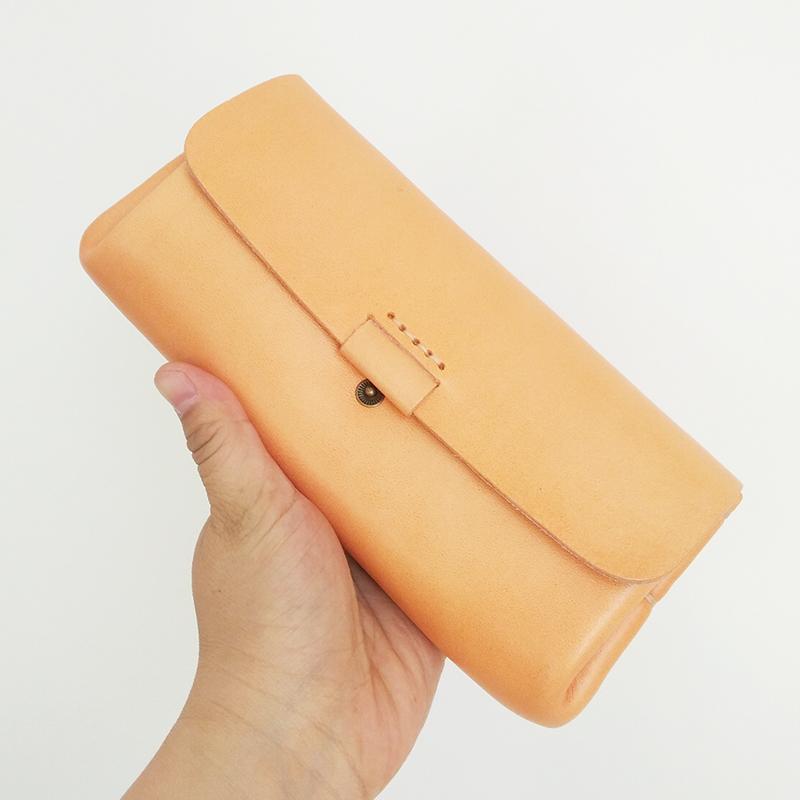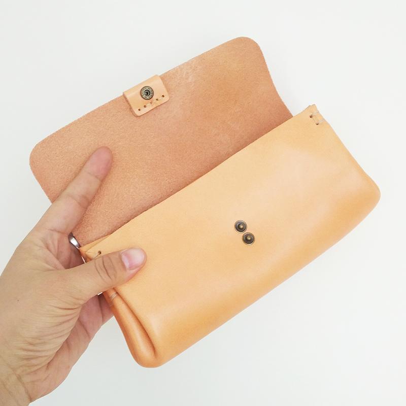 Design: Handmade Suede Mens Leather Light Beige Long Wallet Cool Envelope Wallet Clutch for Men