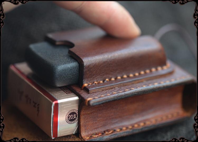 Design: Cool Handmade Brown Leather Mens Calibu Zippo Cigarette Case with Lighter Holder for Men