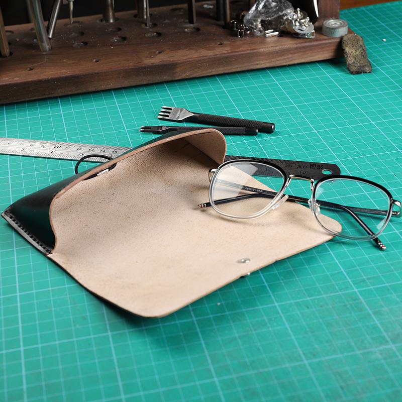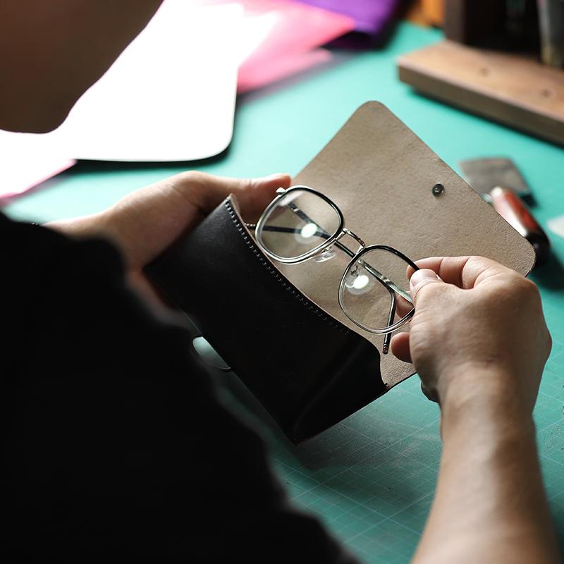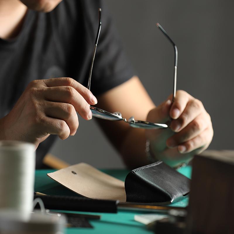 Style: Handmade Vintage LEATHER MEN'S Sunglasses Box Case Yellow Brown Glasses Holder For Men