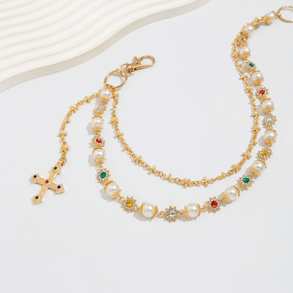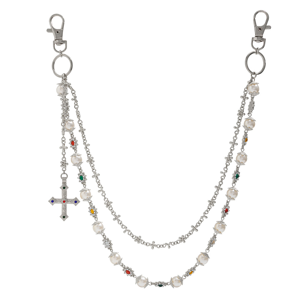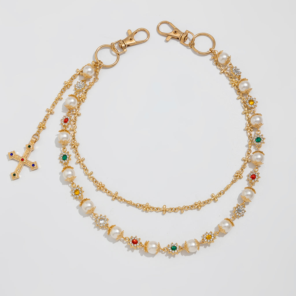 The beauty of this Gold Wallet Chain lies in its ability to adapt to different styles and occasions. Whether you're dressing up for a special event or adding a touch of elegance to your daily wardrobe, the pearl elements keep it soft and wearable, while the cross pendant adds personal meaning. This Double Wallet Chain proves that you can embrace both trend-forward style and timeless elegance in one beautiful accessory.