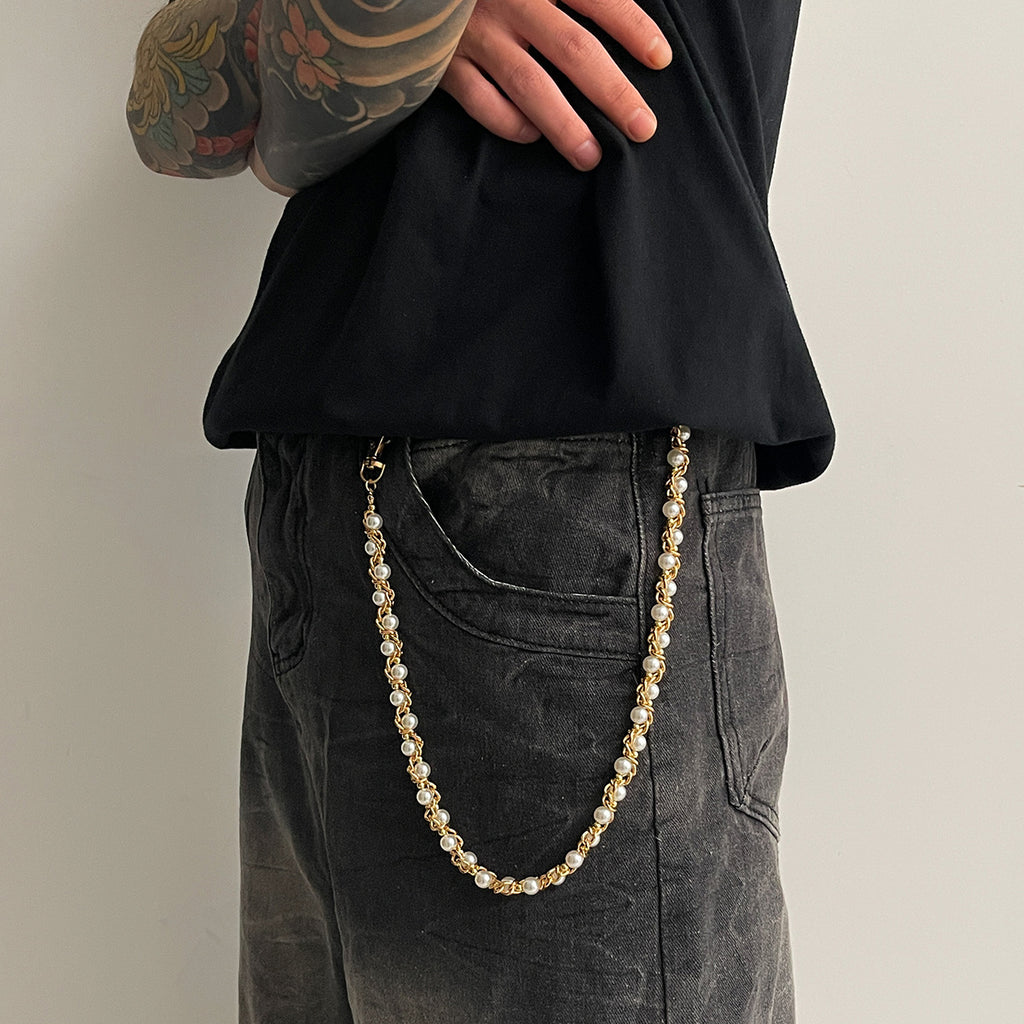 Introduce a touch of unexpected elegance and modern edge with our Pearl Wallet Chain, a uniquely crafted accessory that reimagines the classic waist chain. This stunning Beaded Wallet Chain features a 55cm strand of lustrous faux pearls artfully twisted together with a complementary alloy chain, creating a captivating intertwined design. Available in two versatile finishes—Silver and Gold—this Ball Wallet Chain masterfully balances the soft sophistication of pearls with the strong, structured appeal of metal. Whether you’re dressing up a casual look or adding a feminine-meets-industrial accent to an evening ensemble, this piece offers versatile style that adapts to your personal aesthetic.
