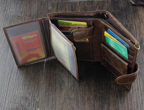 Slots: 2 full size bill slot, 9 card holders, 1 zipper slot