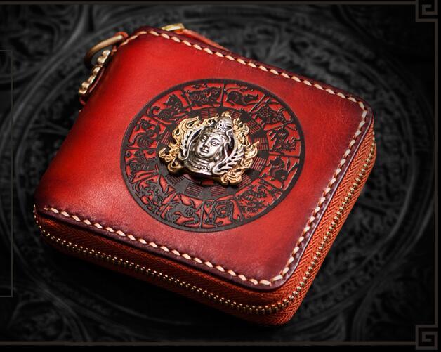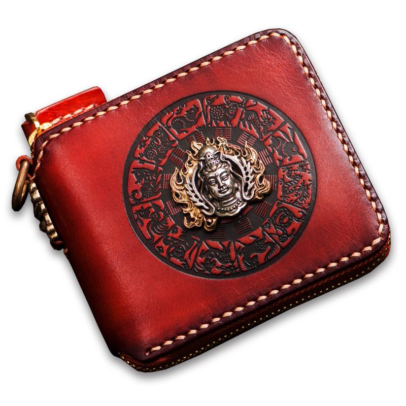 Design: Handmade Leather Small Tooled Mens billfold Wallet Cool Chain Wallet Biker Wallet for Men