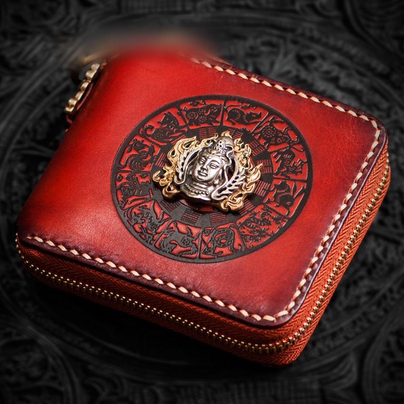 Style: Handmade Leather Small Tooled Mens billfold Wallet Cool Chain Wallet Biker Wallet for Men