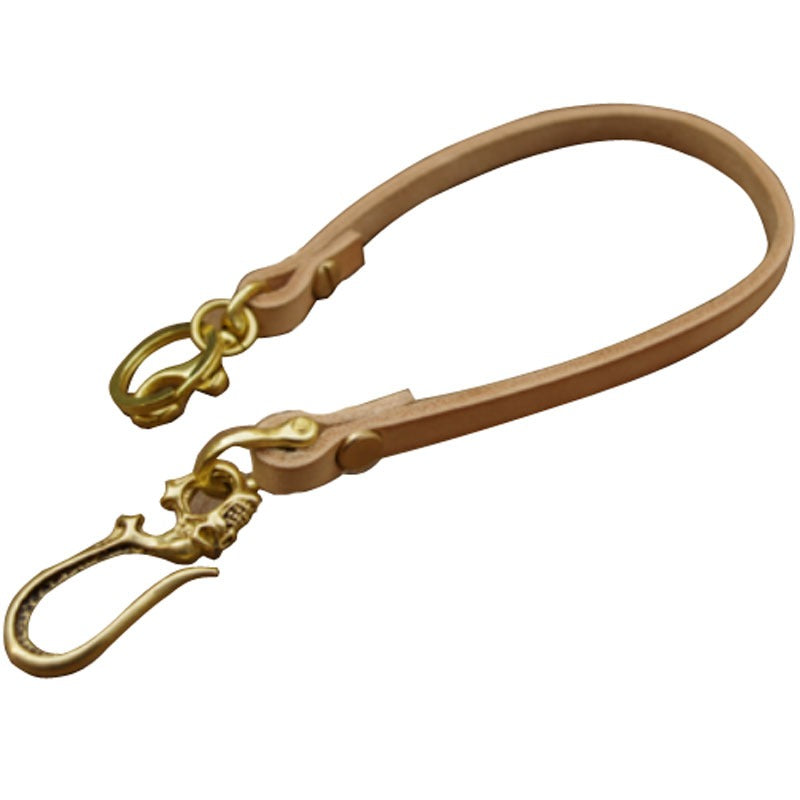 Style: 16'' Handmade Beige Leather Wallet Chain Cool Skull Biker Wallet Chain KeyChain for Men