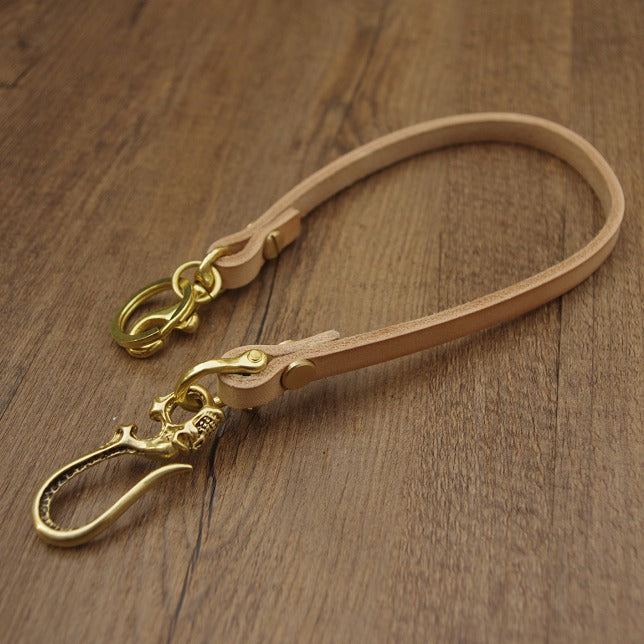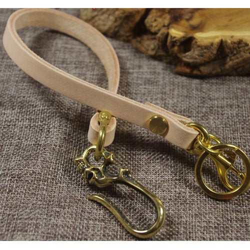 Design: 16'' Handmade Beige Leather Wallet Chain Cool Skull Biker Wallet Chain KeyChain for Men