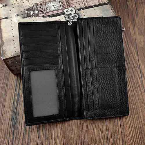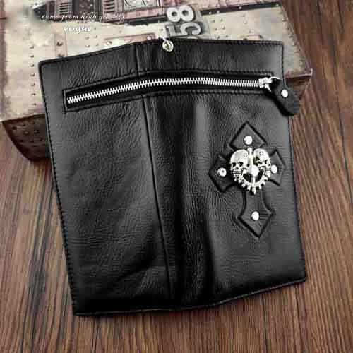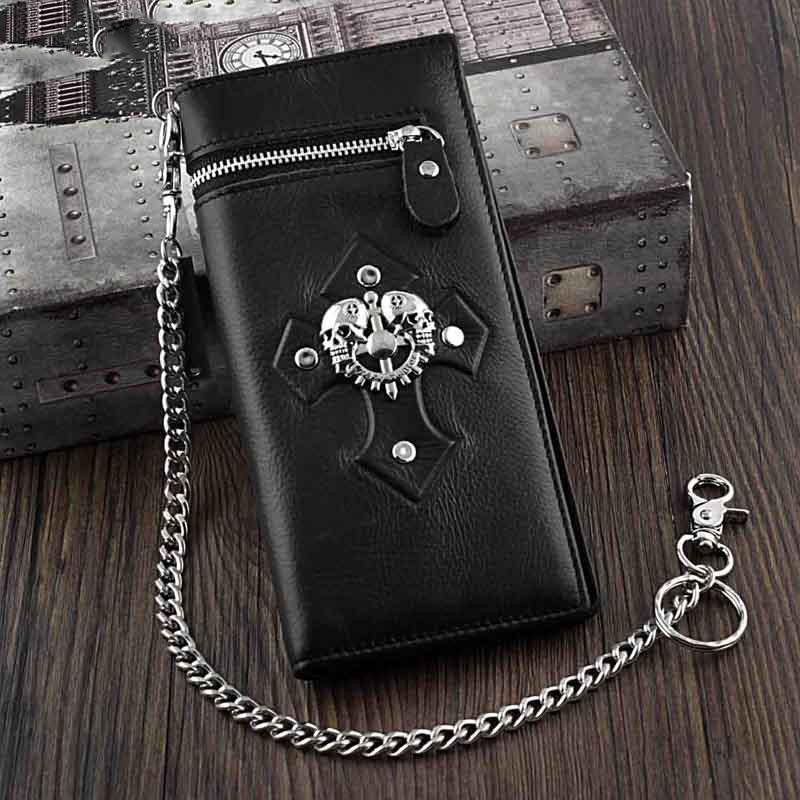 Style: Badass Black Leather Men's Long Biker Handmade Wallet Silver Cross Tooled Zipper Long Wallets For Men