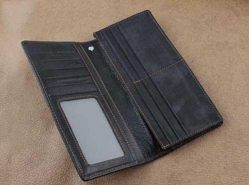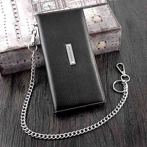 Design: Badass Black Leather Men's Punk Cross Long Biker Chain Wallet Black Long Wallets with Chain For Men