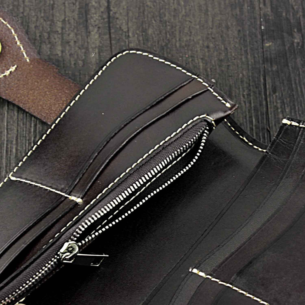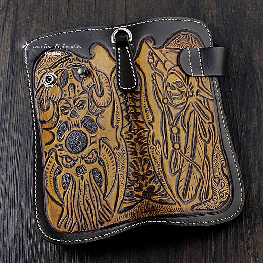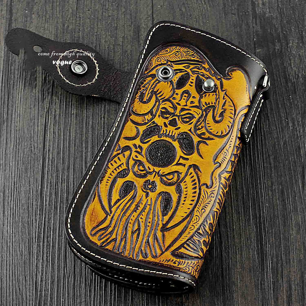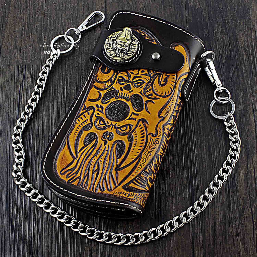 Design: Badass Skull Leather Men's Long Wallet with Chain Biker Wallet Chain Wallet For Men