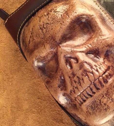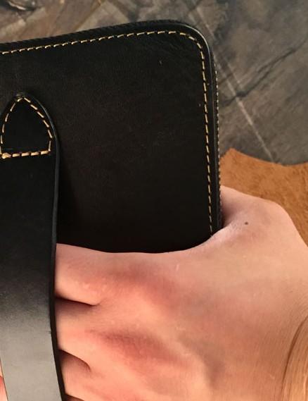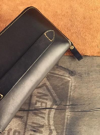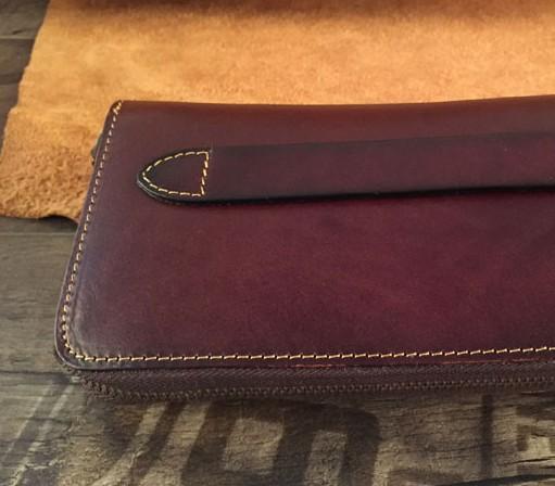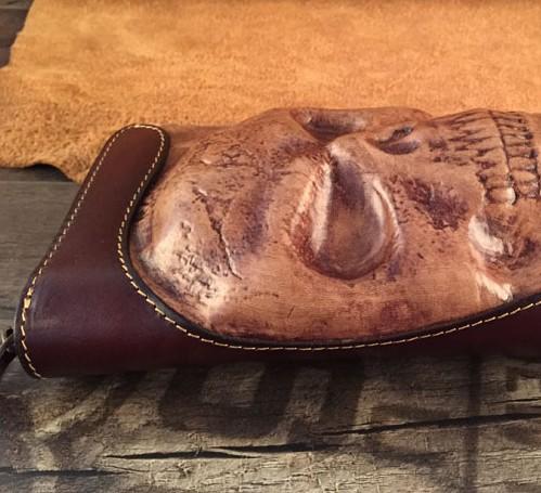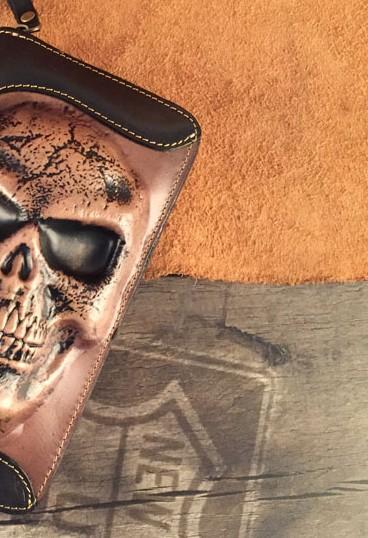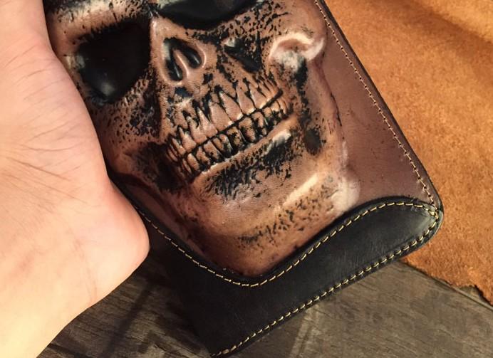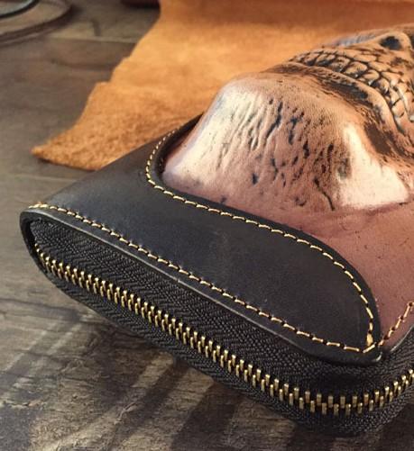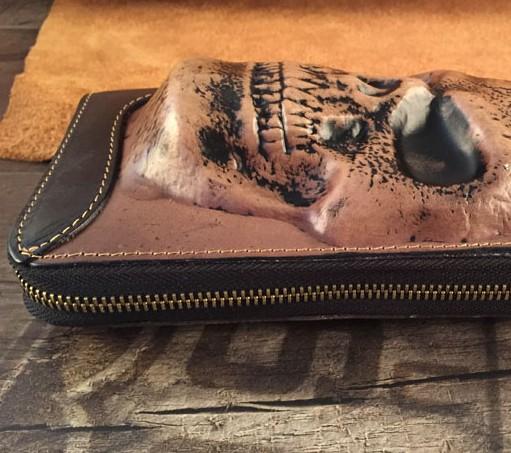 Design: Handmade Genuine Leather Mens Clutch Cool Long Wallet Skull Zipper Clutch Wristlet Wallet for Men