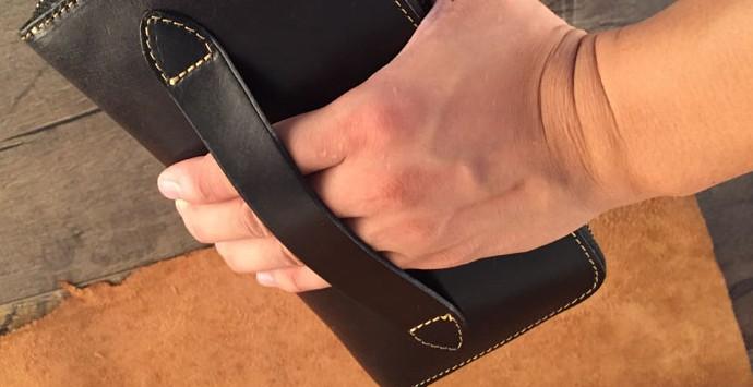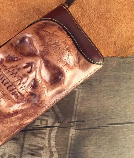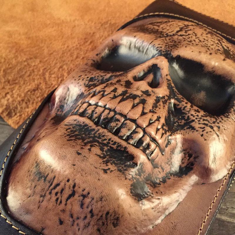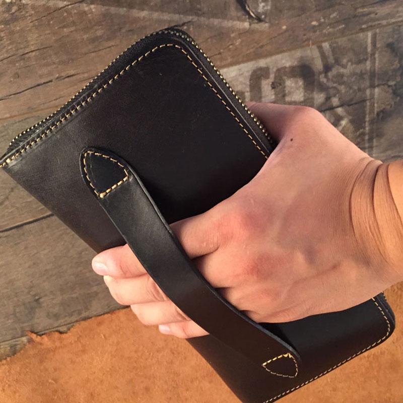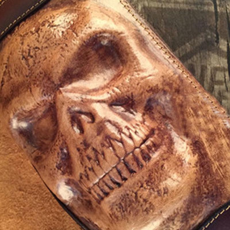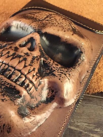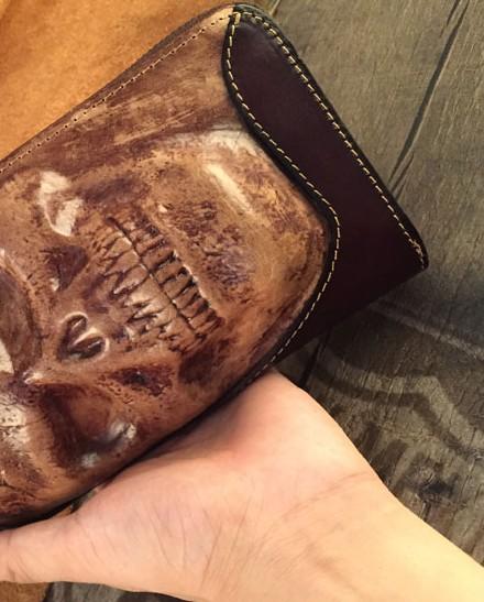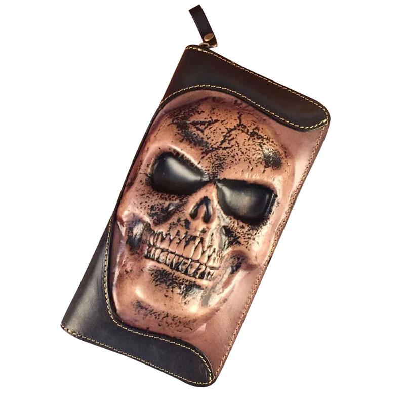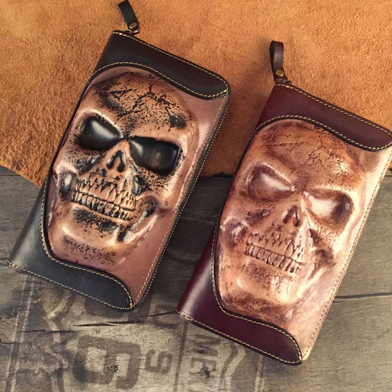 Style: Handmade Genuine Leather Mens Clutch Cool Long Wallet Skull Zipper Clutch Wristlet Wallet for Men
