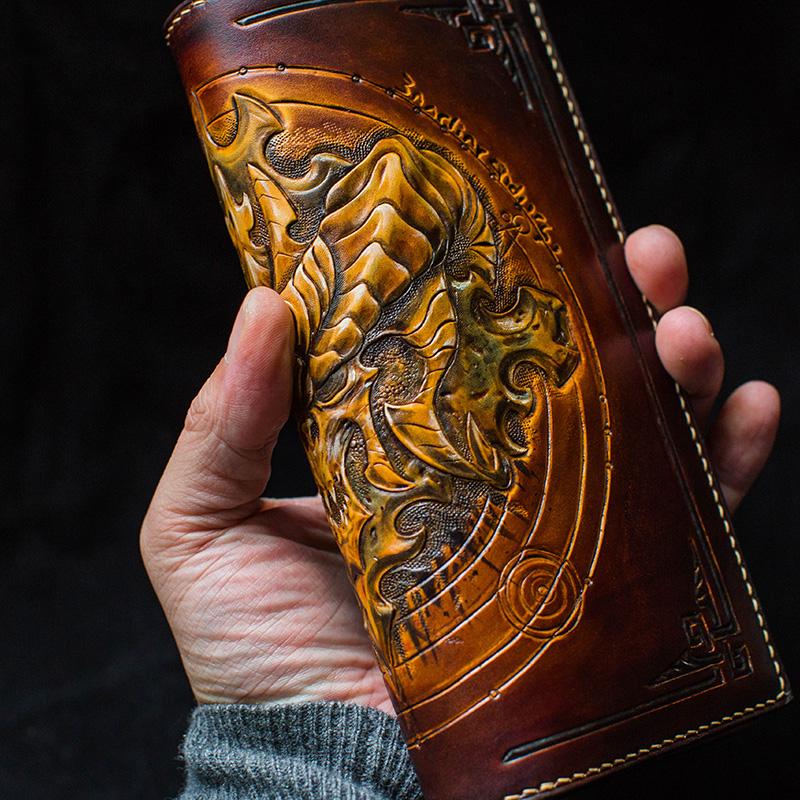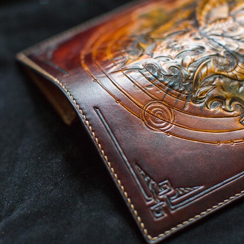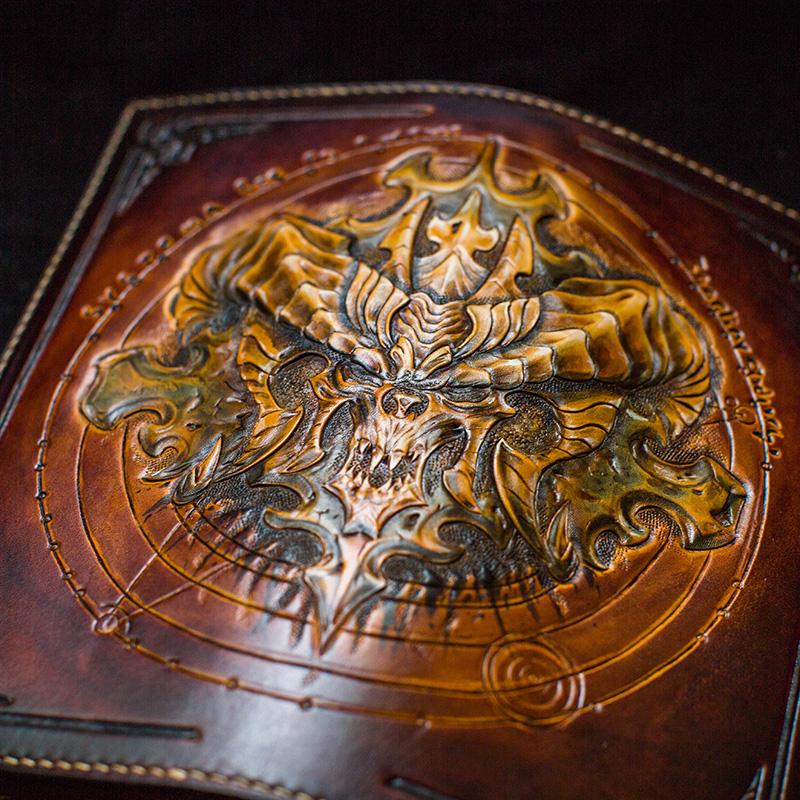 Design: Handmade Leather Tooled? Diablo Skull Mens Chain Biker Wallet Cool Leather Wallet With Chain Wallets for Men