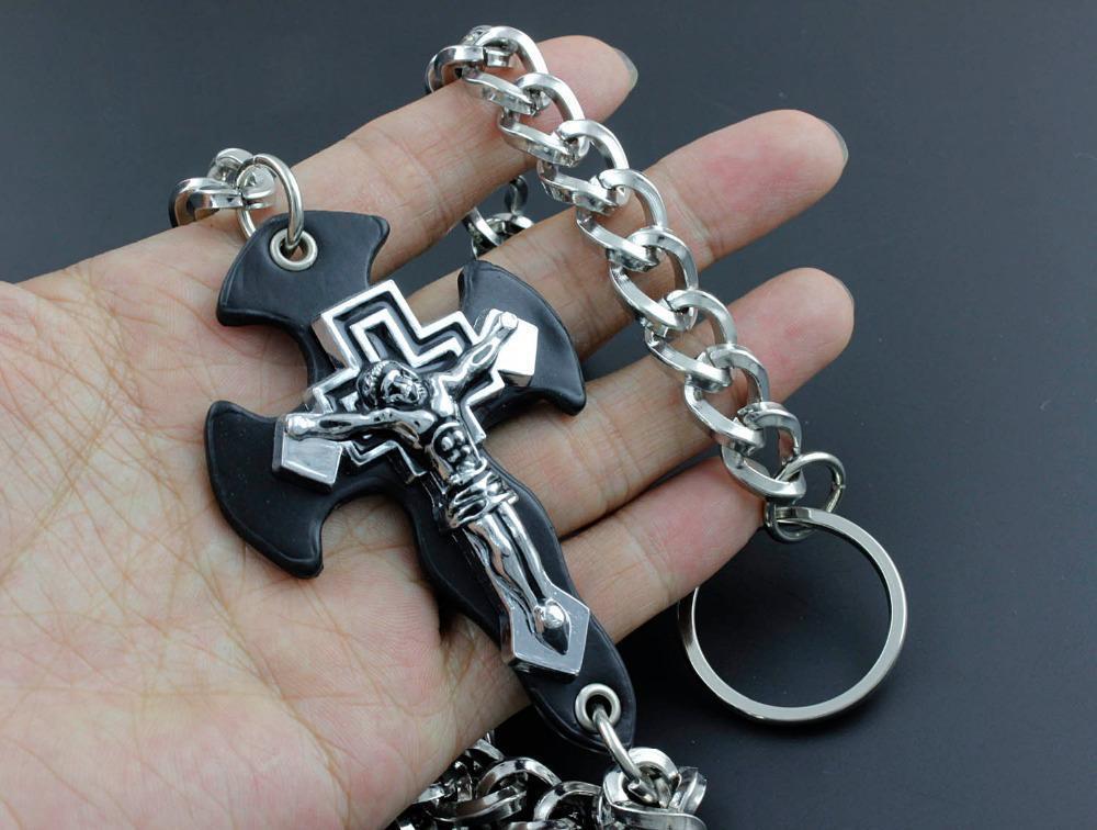 Style: Solid Stainless Steel Cross Wallet Chain Cool Punk Rock Biker Trucker Wallet Chain Trucker Wallet Chain for Men