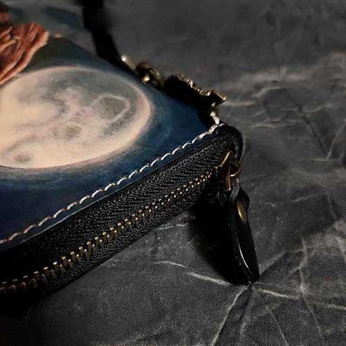 Design: Badass Black Leather Men's Long Biker Handmade Wallet Wolf Tooled Zipper Long Wallets For Men
