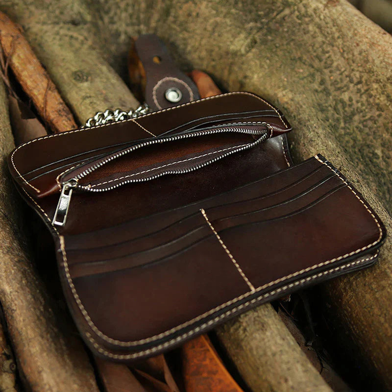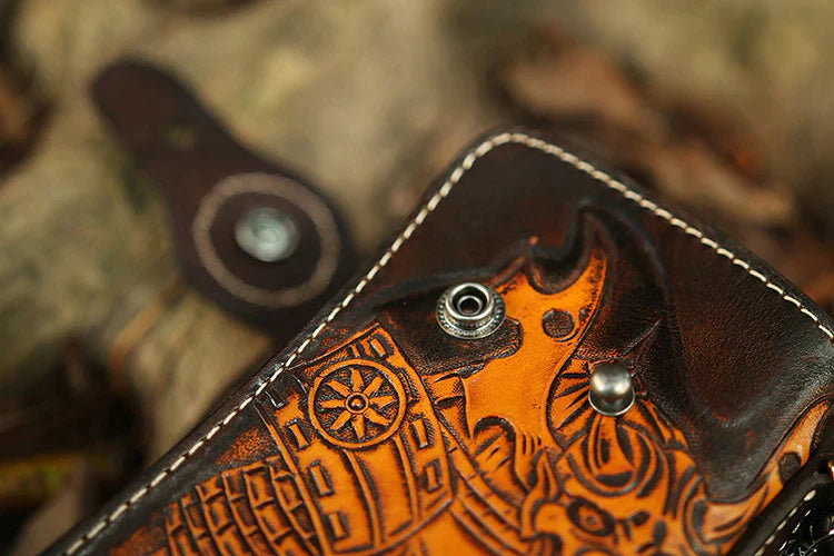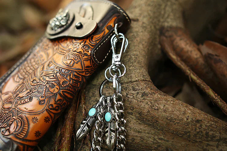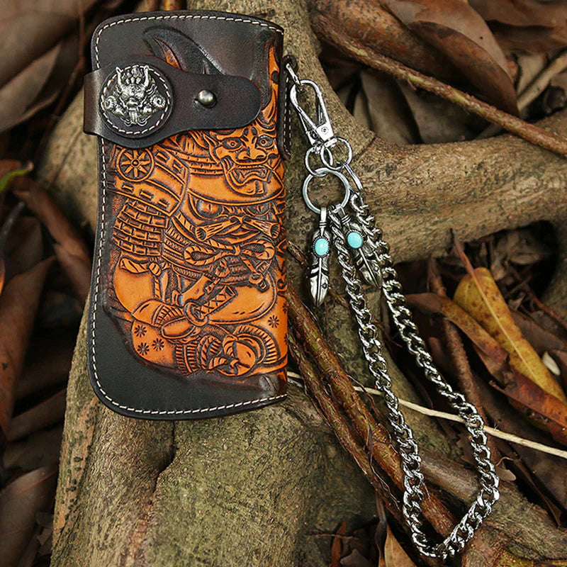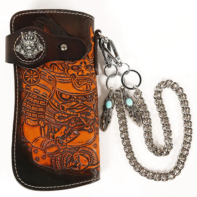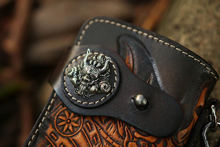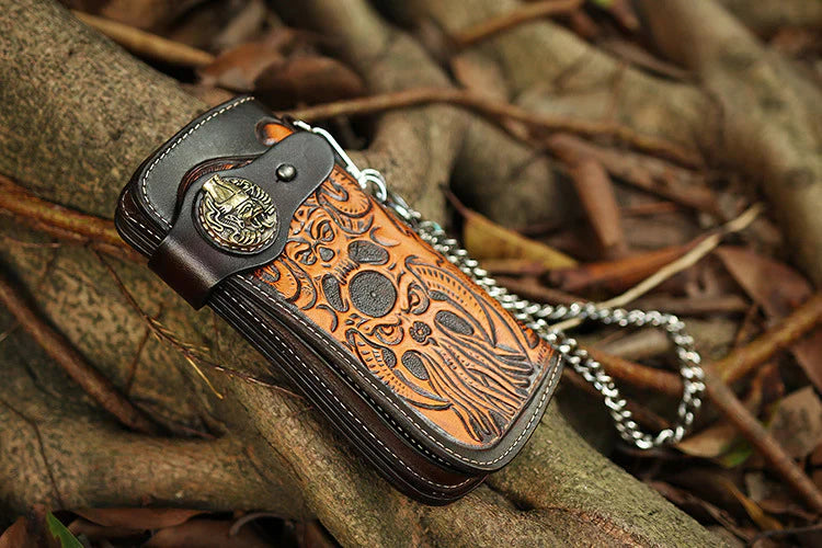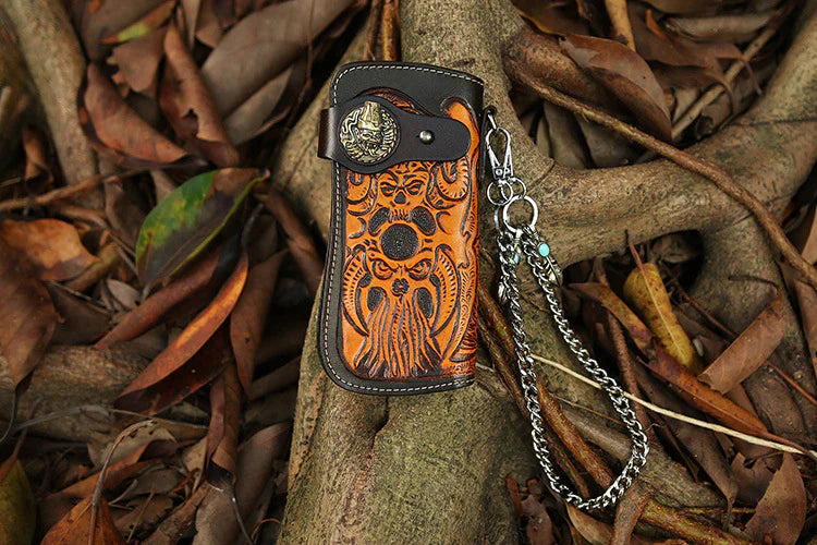 Style: Cool Leather Devil Cthulhu Tooled Biker Wallet Handmade Chain Wallet for Men