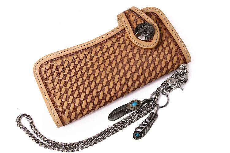 Style: Cool Leather Eagle Tooled Biker Wallet Handmade Biker Chain Wallet for Men