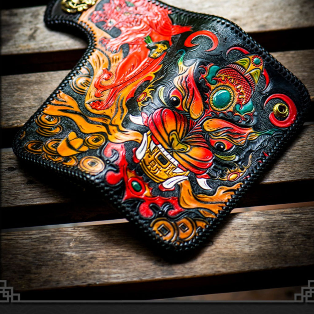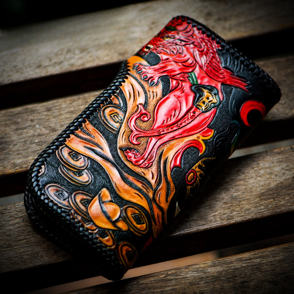 Design: Handmade Tooled Leather Wallet Biker Wallet Biker Chain Wallet Mens Tooled Leather Wallet
