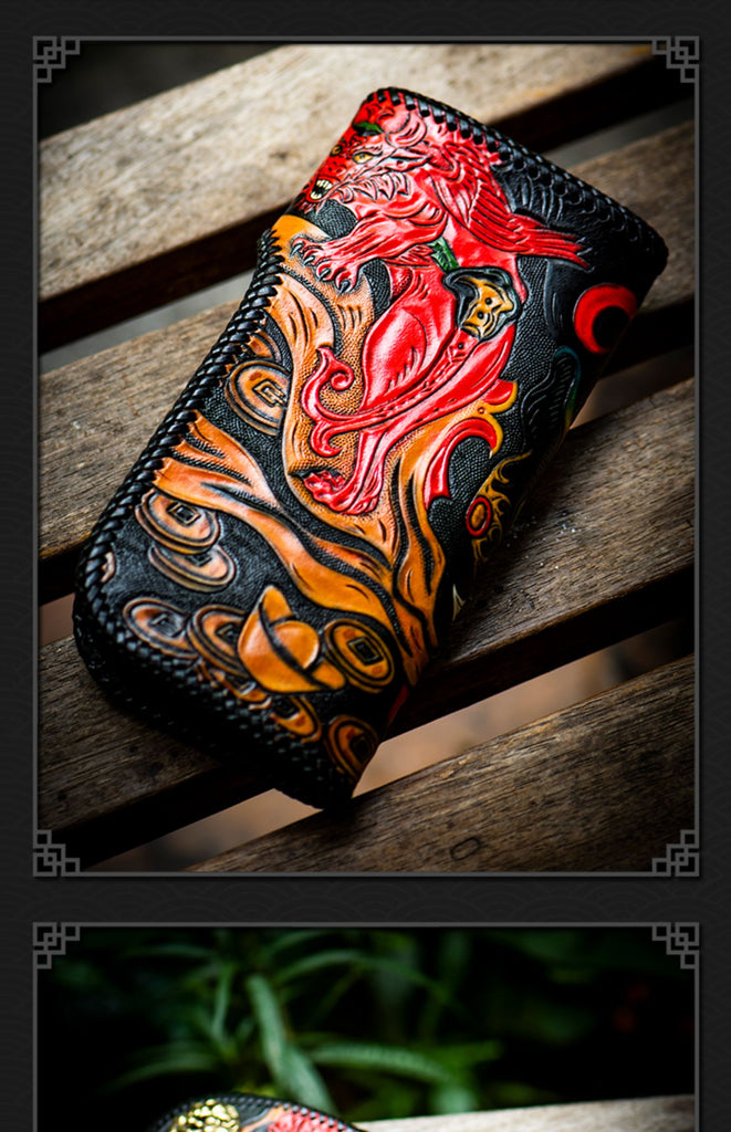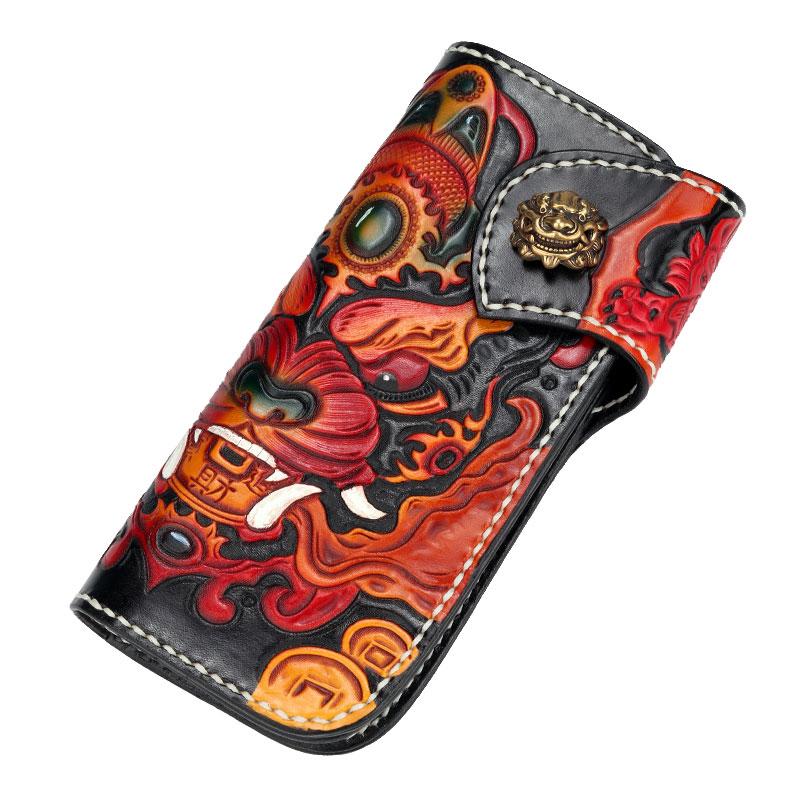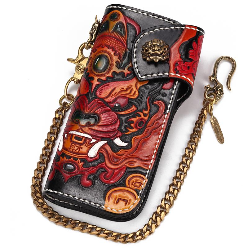 Style: Handmade Leather Monster Mens Chain Biker Wallet Cool Leather Wallet Long Phone Wallets for Men