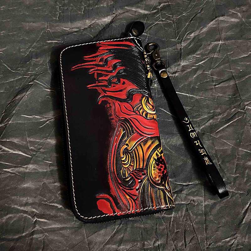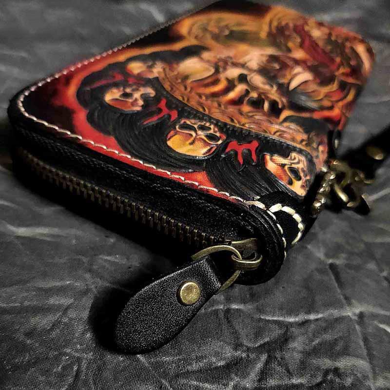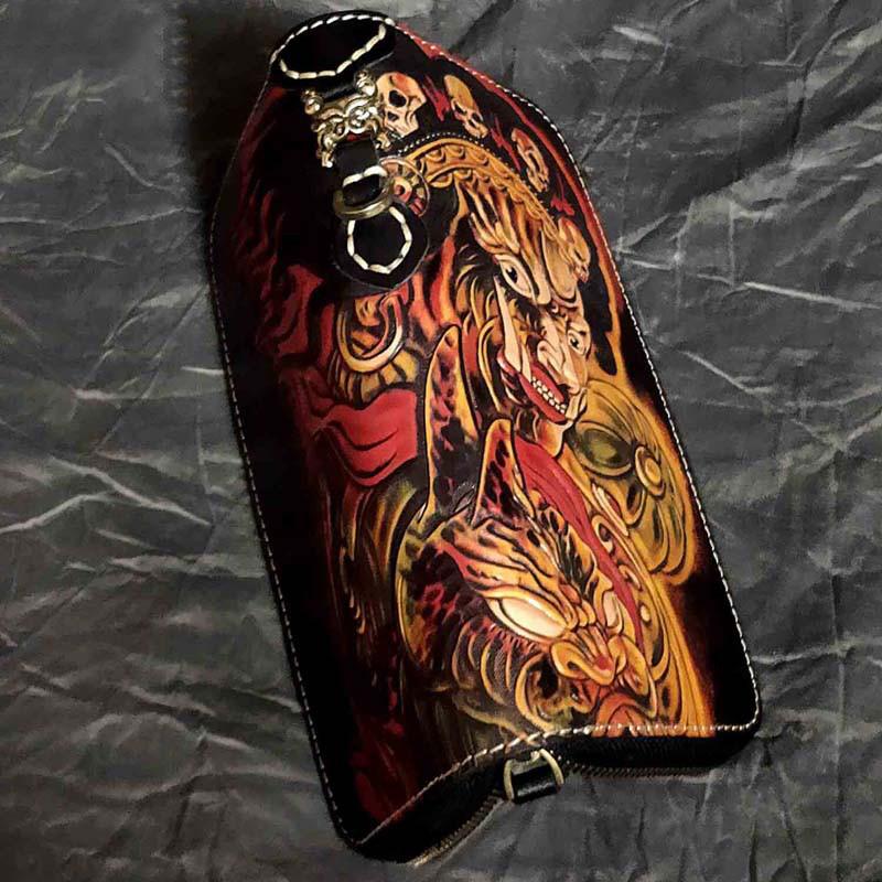 Design: Badass Black Leather Men's Long Biker Handmade Wallet Mahākāla Tooled Zipper Long Chain Wallets For Men