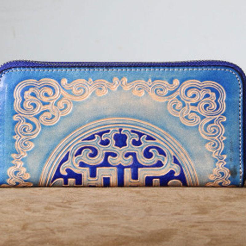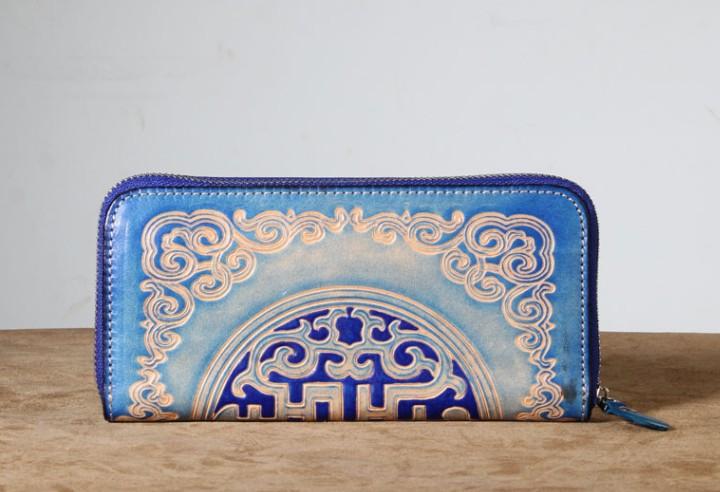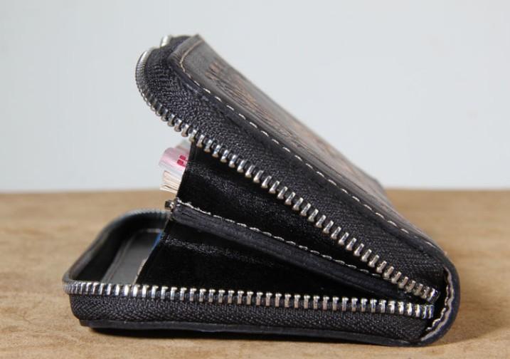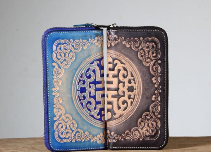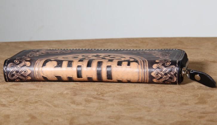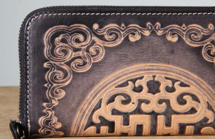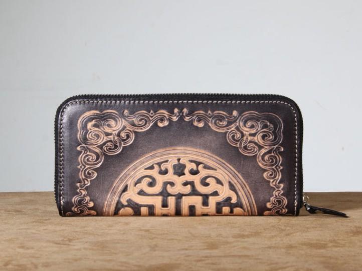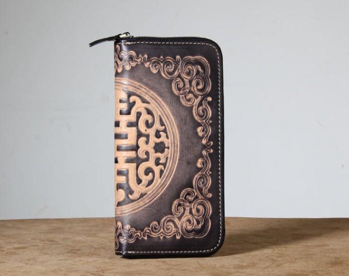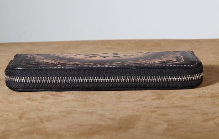 Design: Handmade Genuine Leather Mens Cool Tooled Long Leather Wallet Bifold Clutch Wallet for Men