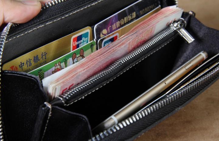 Slots: 2 full size bill slot, 8 card holders, 1 zipper slot