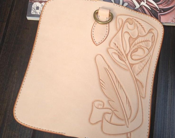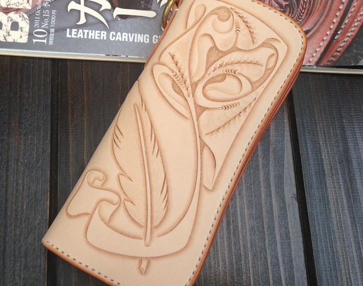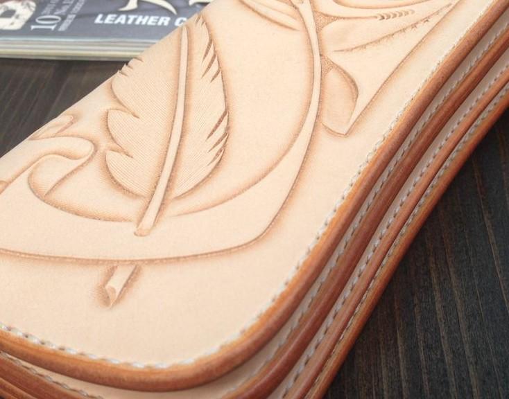 Style: Handmade Leather Biker Wallet Tooled Floral Mens Cool Chain Wallet Trucker Wallet with Chain