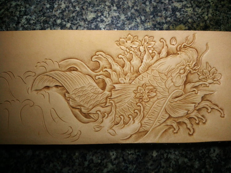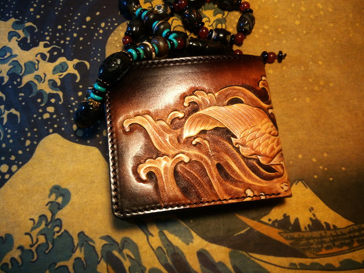 Style: Handmade Leather Carp Fish Tooled Mens billfold Wallet Cool Leather Wallet Slim Wallet for Men