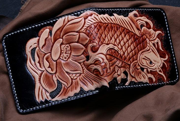 Design: Handmade Leather Carp Tooled Mens billfold Wallet Cool Leather Wallet Slim Wallet for Men