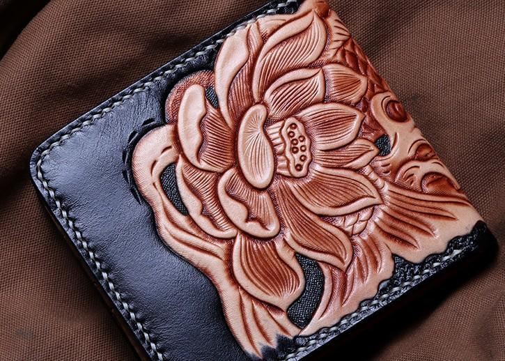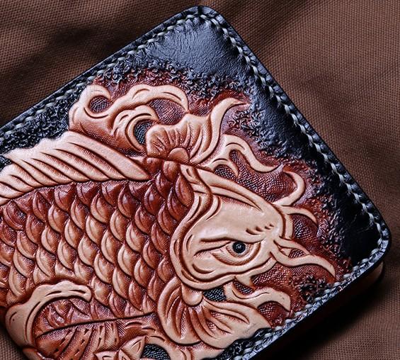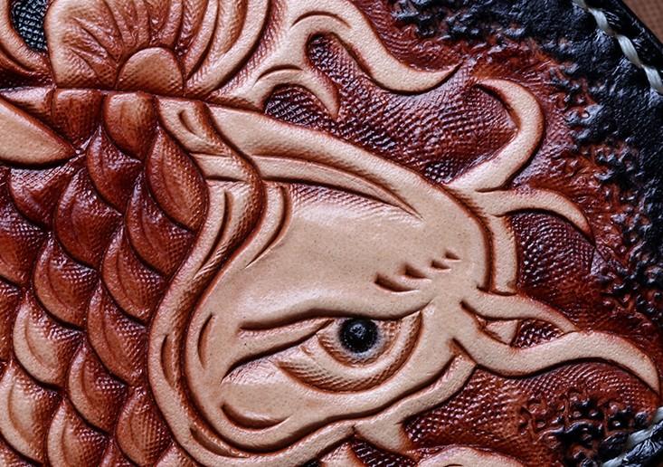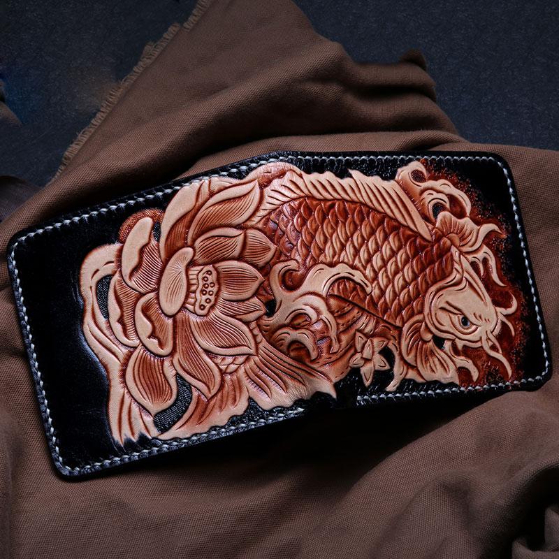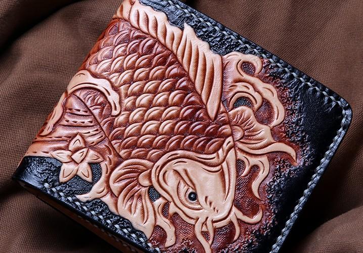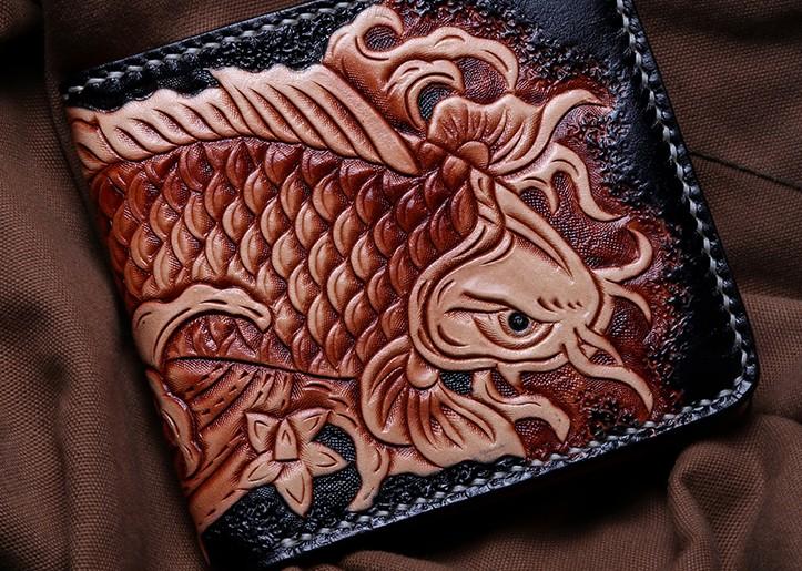 Style: Handmade Leather Carp Tooled Mens billfold Wallet Cool Leather Wallet Slim Wallet for Men