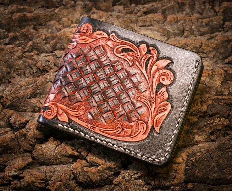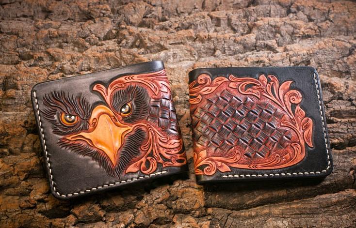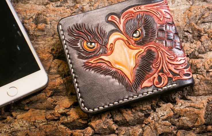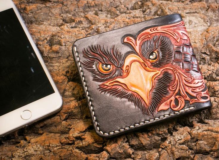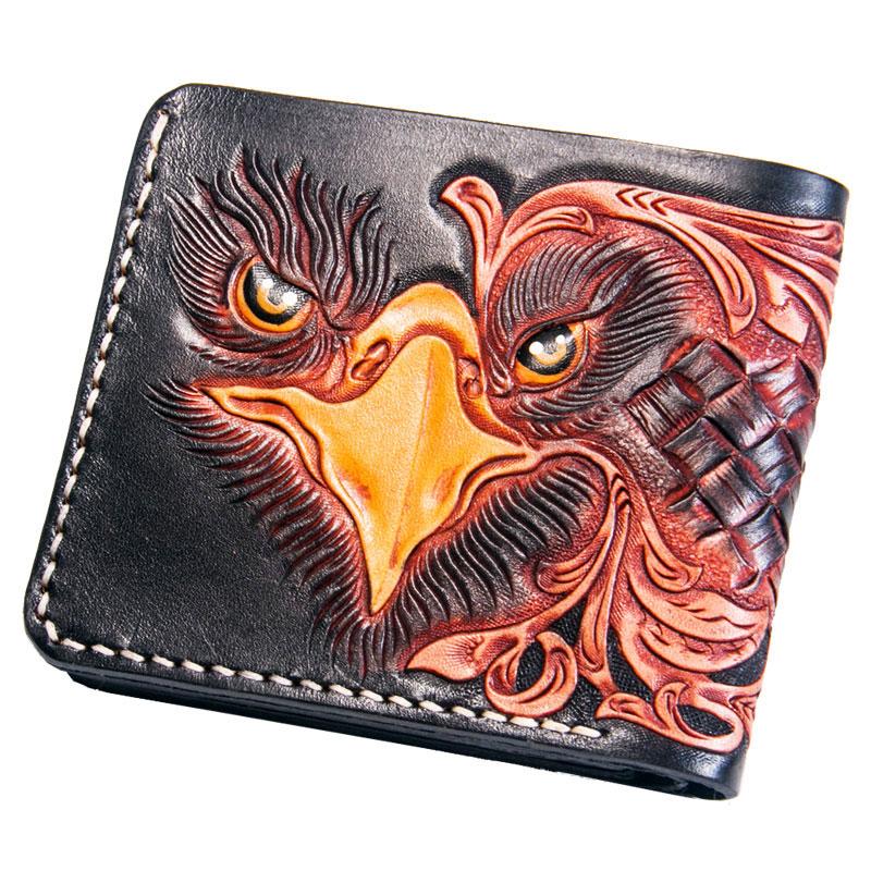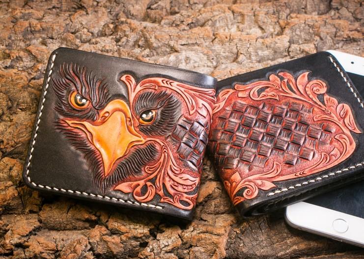 Design: Handmade Leather Eagle Tooled Mens billfold Wallet Cool Leather Wallet Slim Wallet for Men
