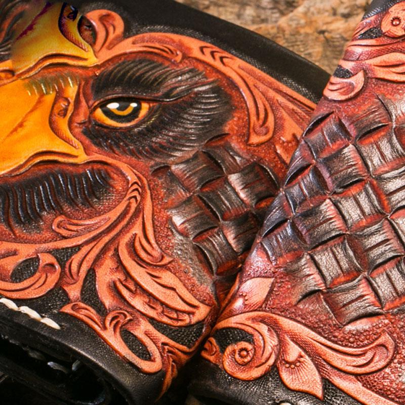 Handmade Leather Eagle Tooled Mens billfold Wallet Cool Leather Wallet Slim Wallet for Men