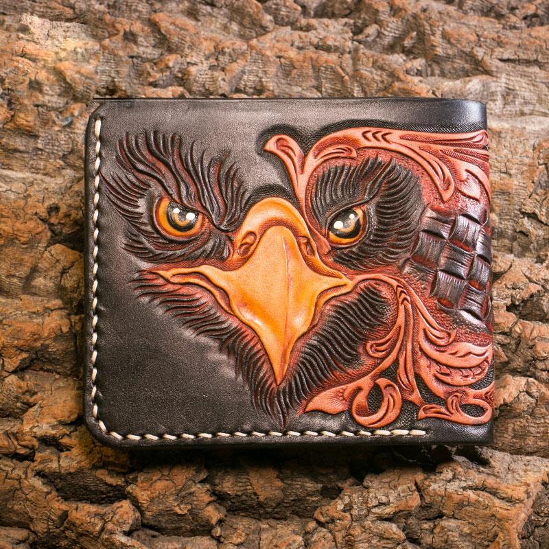 Style:Handmade Leather Eagle Tooled Mens billfold Wallet Cool Leather Wallet Slim Wallet for Men