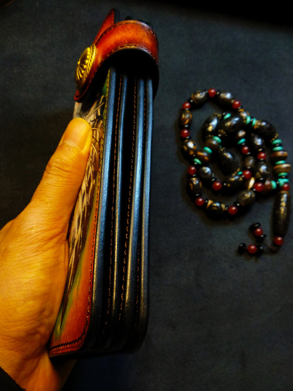 Design: Handmade Leather Skull Indian Mens Chain Wallet Biker Wallet Cool Leather Wallet Long Tooled Wallets for Men