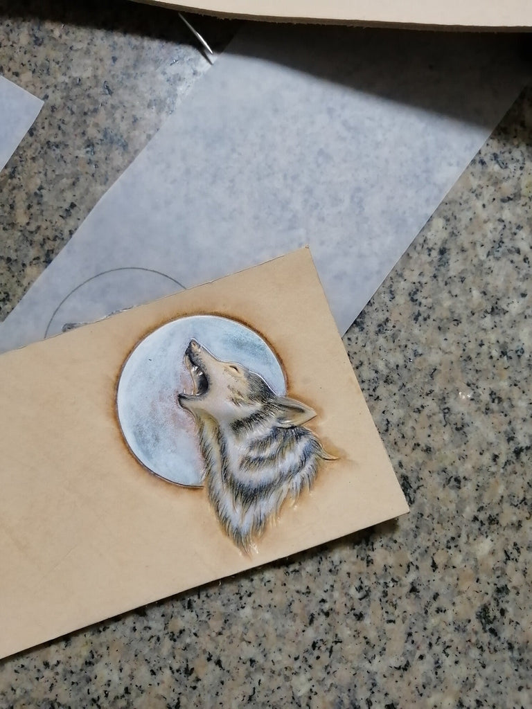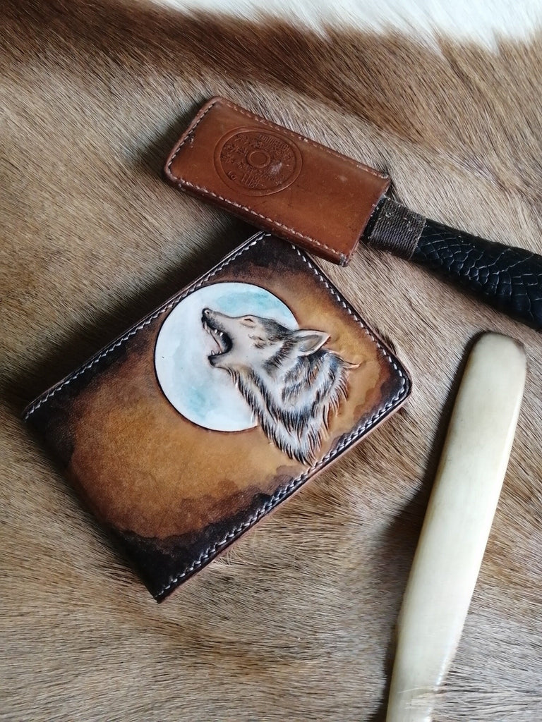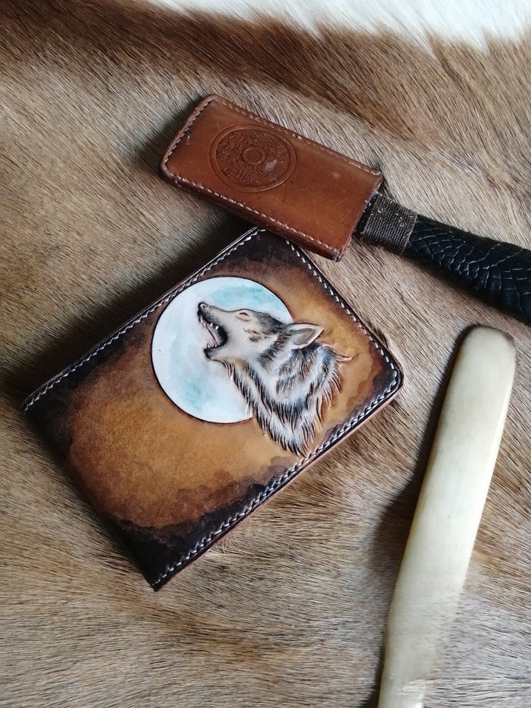 Design: ID Holder Wallet Mens Wallet with ID Window Wolf Tooled Leather Wallet Card Wallet with ID Window