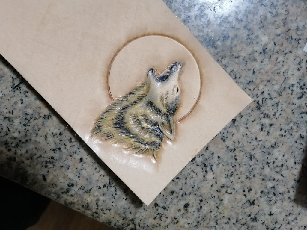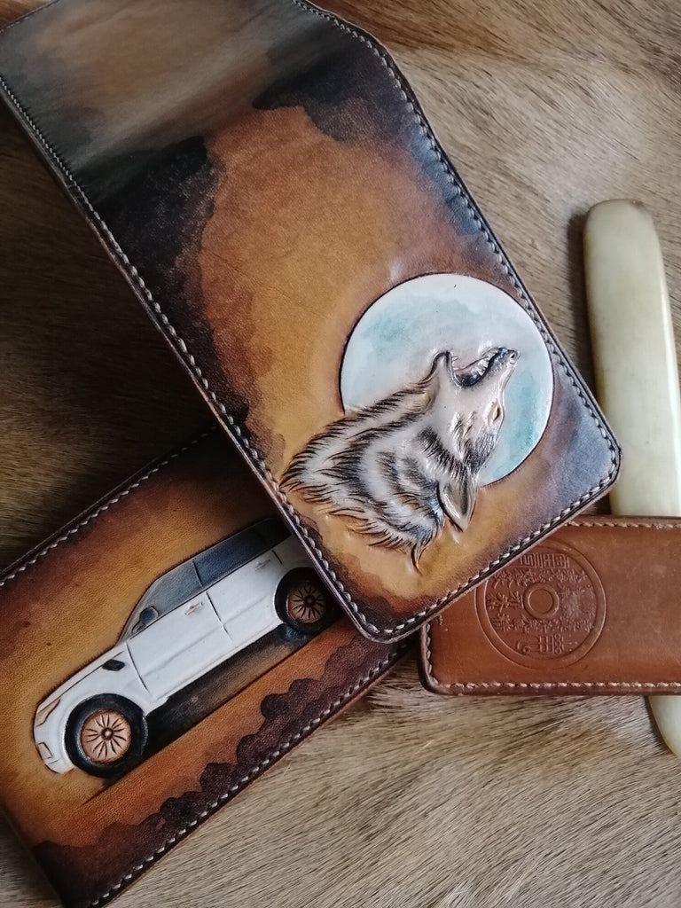 ID Holder Wallet Mens Wallet with ID Window Wolf Tooled Leather Wallet Card Wallet with ID Window