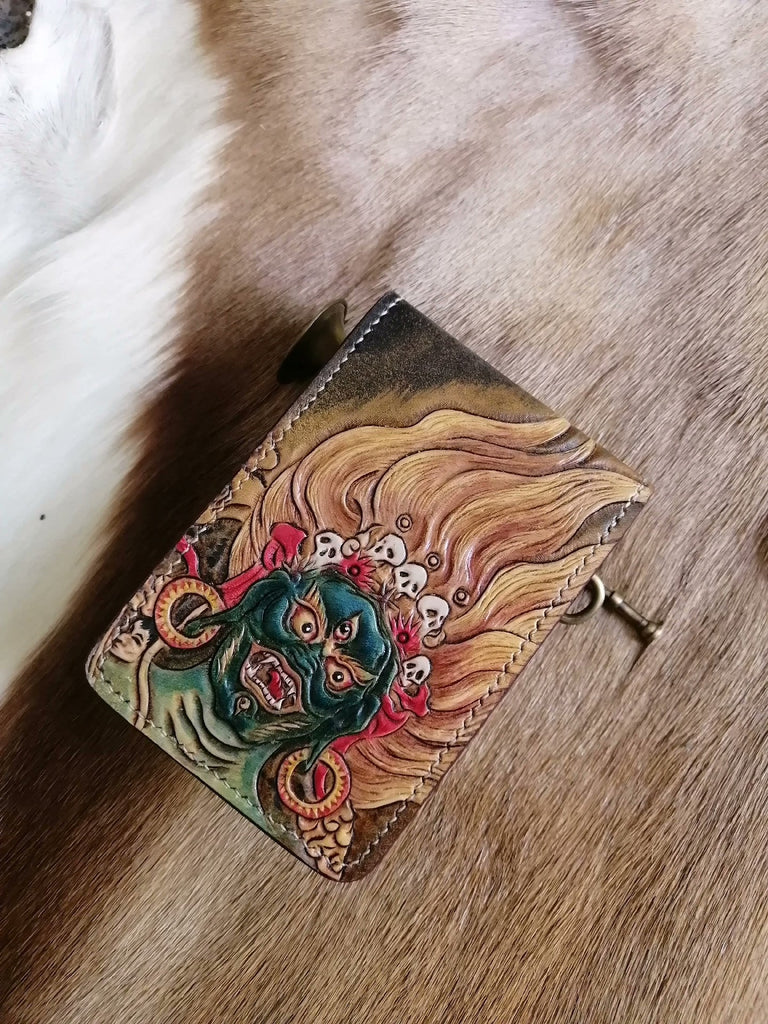Mahakala Deity Wallet ID Holder Wallet Mens Wallet with ID Window Mahakala Wallet Tooled Leather Wallet Card Wallet with ID Window