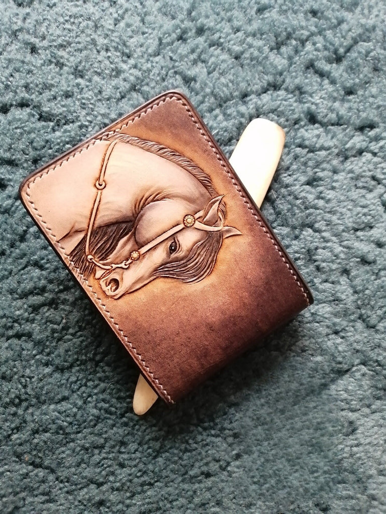 Steed ID Holder Wallet Mens Wallet with ID Window Horse Tooled Leather Wallet Card Wallet with ID Window
