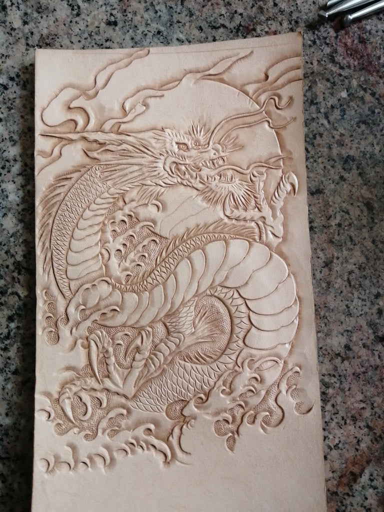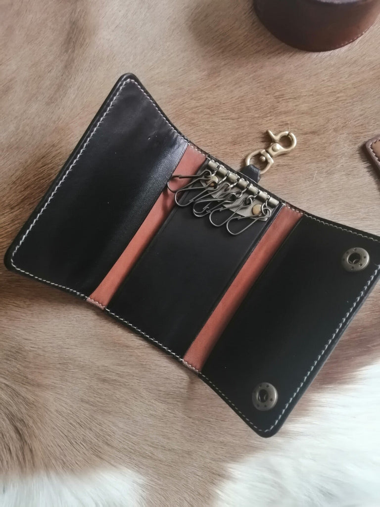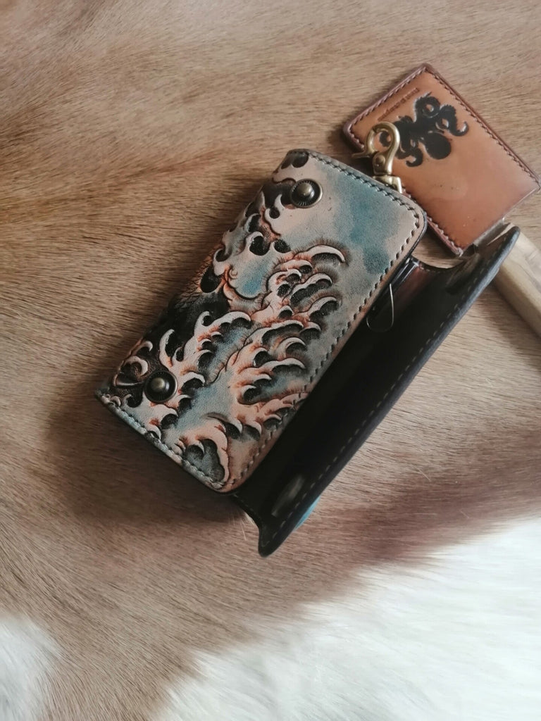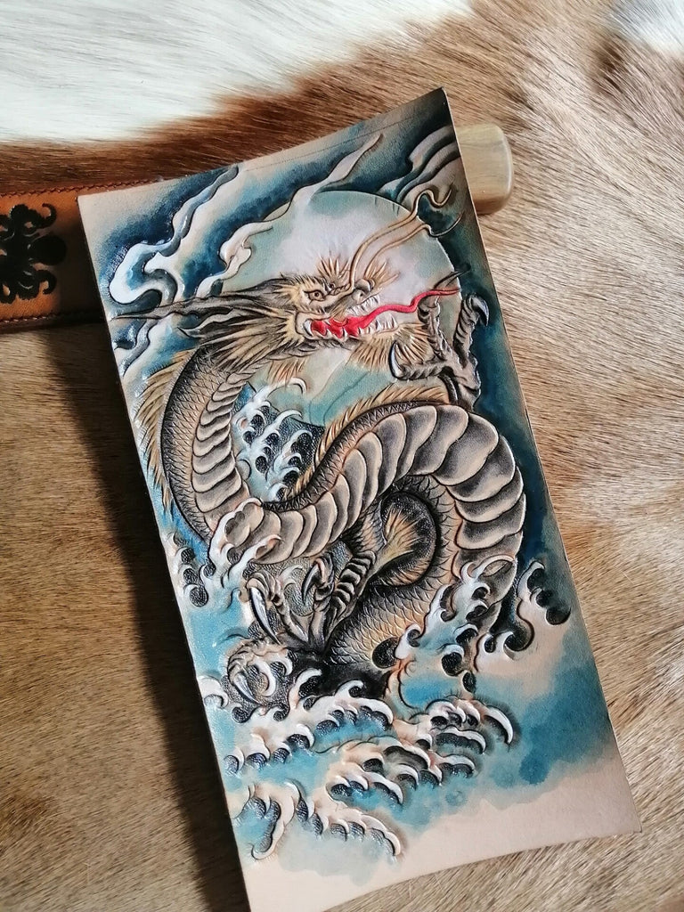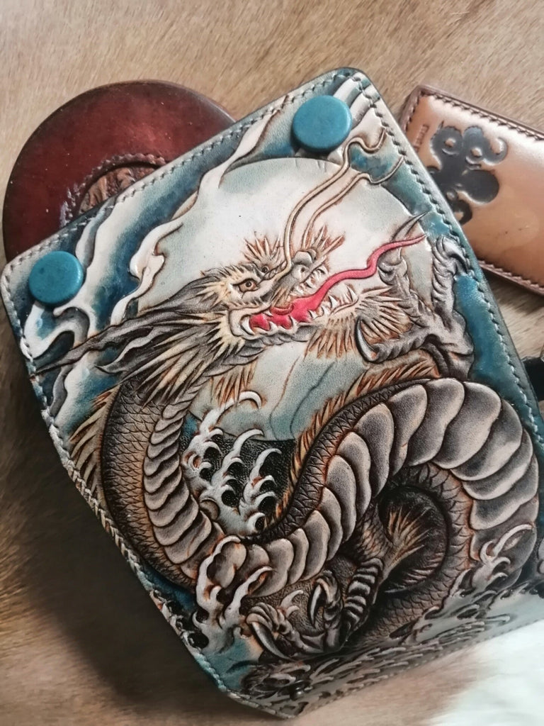 Design: Tooled Leather Key Wallet Key Holders with Card Holder Loong Chinese Dragon Leather Key Wallets