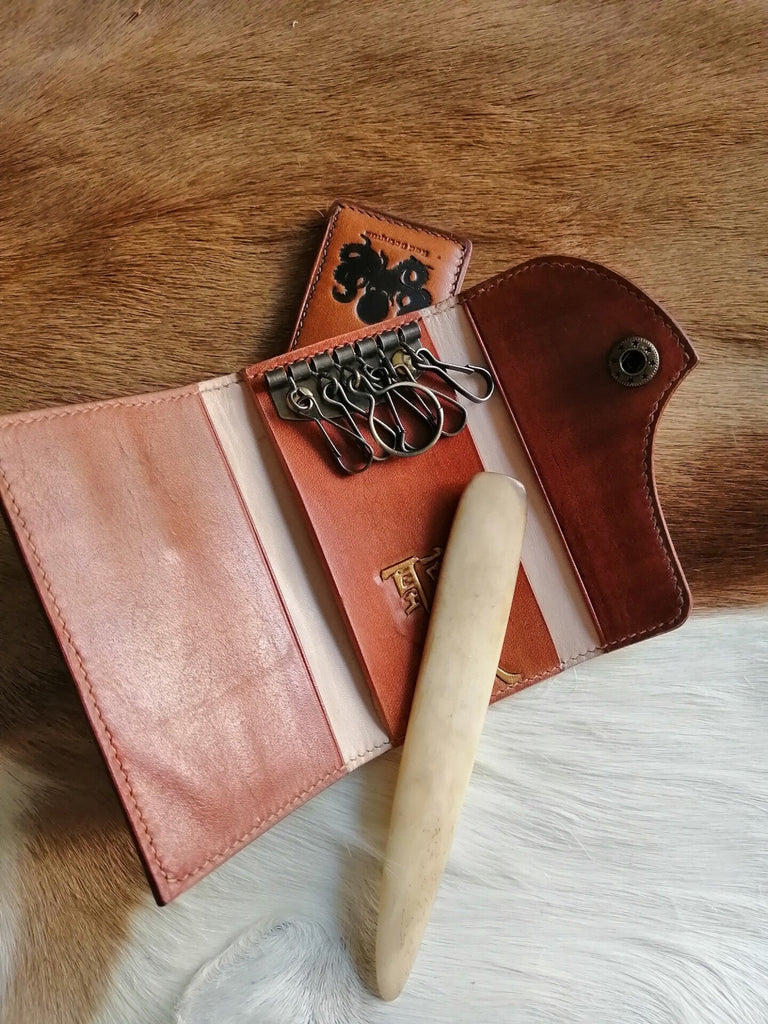 Elevate your everyday carry with our exquisite Tooled Leather Key Wallet, a masterpiece that marries traditional craftsmanship with practical design. Measuring 11cm x 5.5cm x 3cm, it¡¯s compact yet capacious, crafted for those who appreciate unique, hand - finished accessories. This wallet is more than just a key holder¡ªit¡¯s a statement piece.
