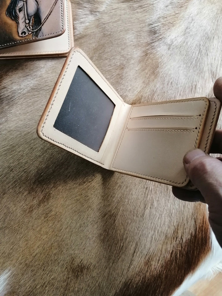 Style: Tooled Leather Wallet Horse Card Wallet with ID Window Steed ID Holder Wallet Mens Wallet with ID Window