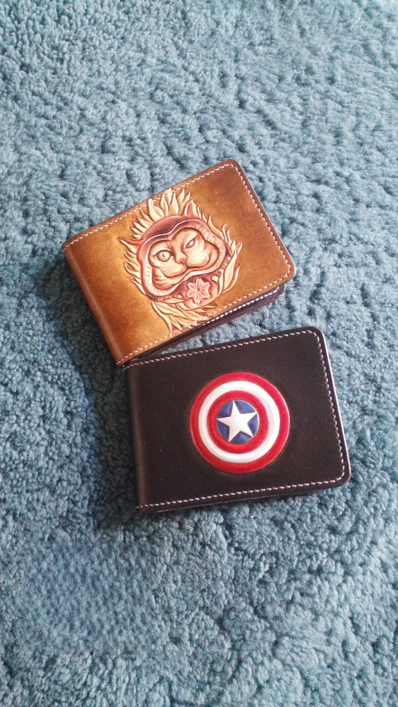 Design: Weird Cat Wallet ID Holder Wallet Mens Wallet with ID Window Weird Cat Wallet Tooled Leather Wallet Card Wallet with ID Window