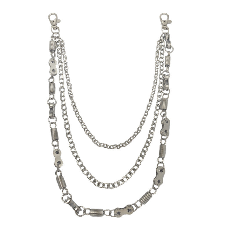 Style: Cool Mens Silver Three Layers Pants Chains Silver Cool Triple Biker Wallet Chain For Men