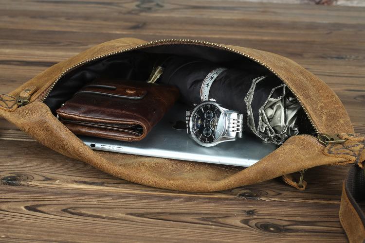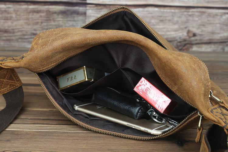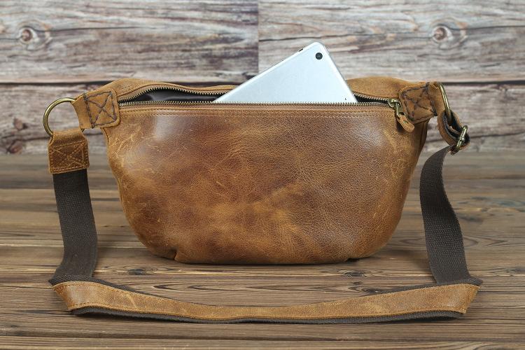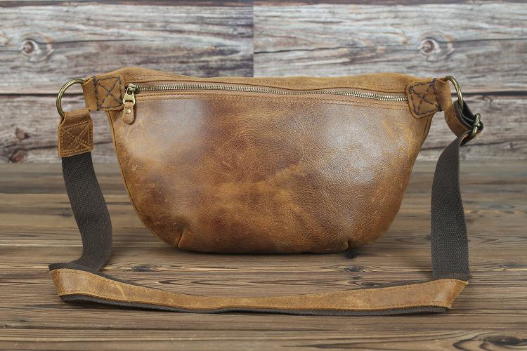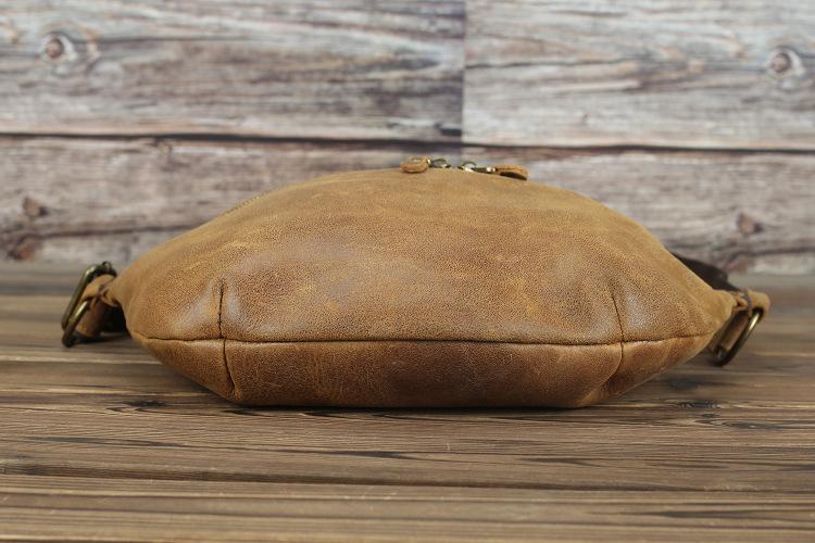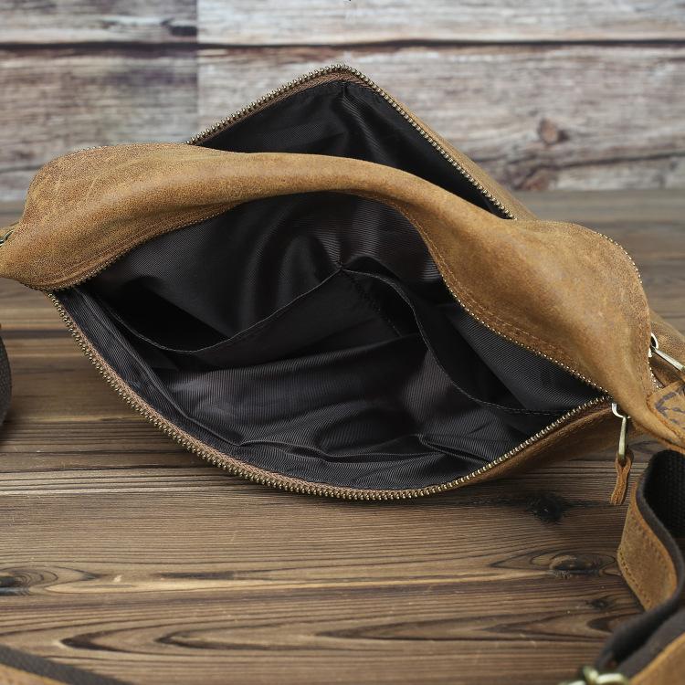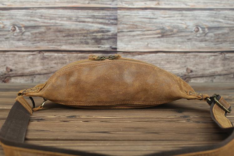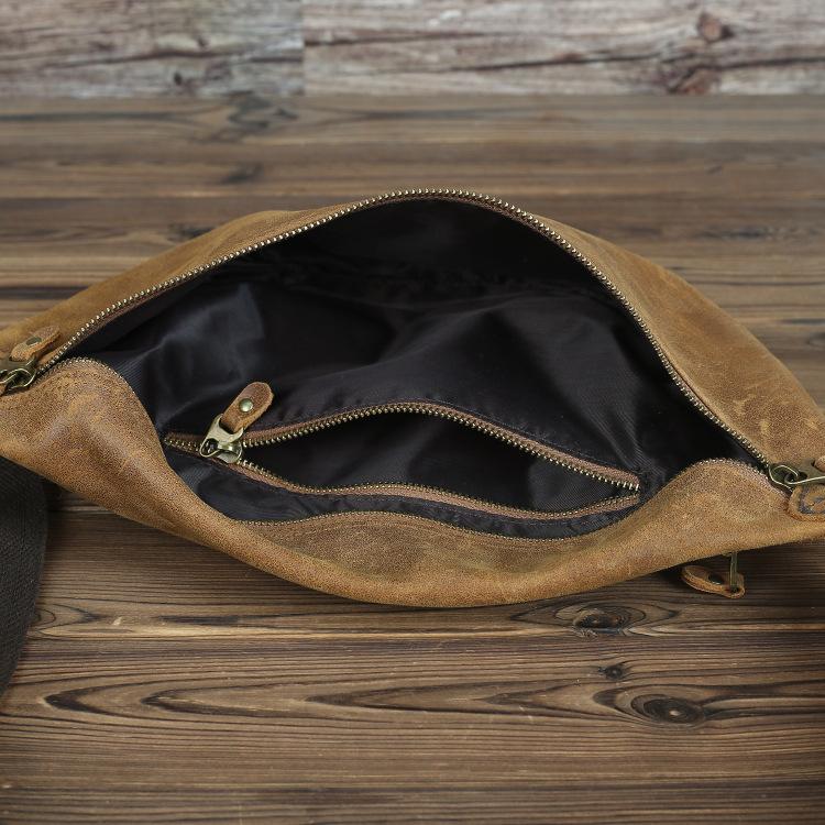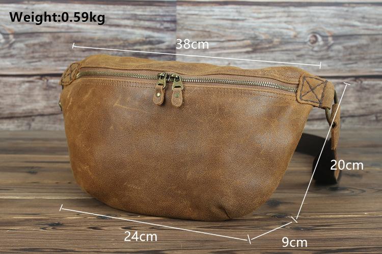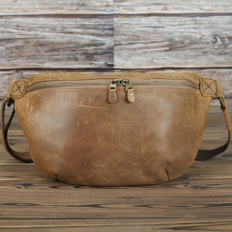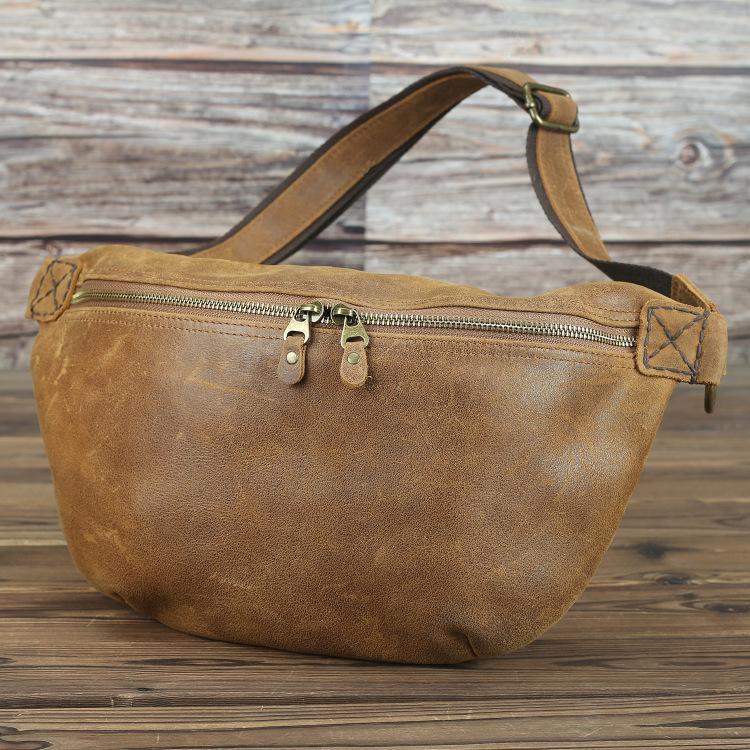 Style: Badass Leather Fanny Pack Men's Brown Chest Bag Hip Bag 8 inches Waist Bag For Men