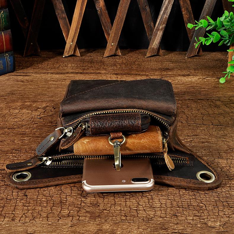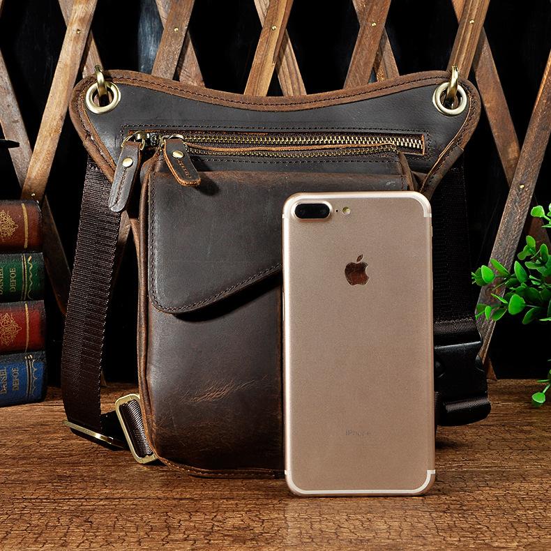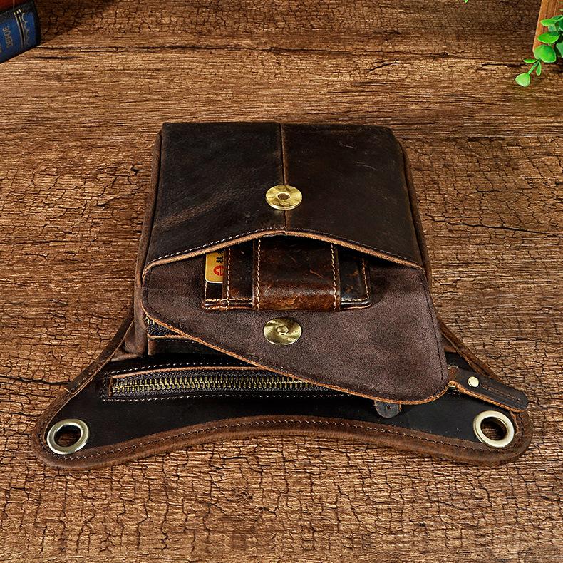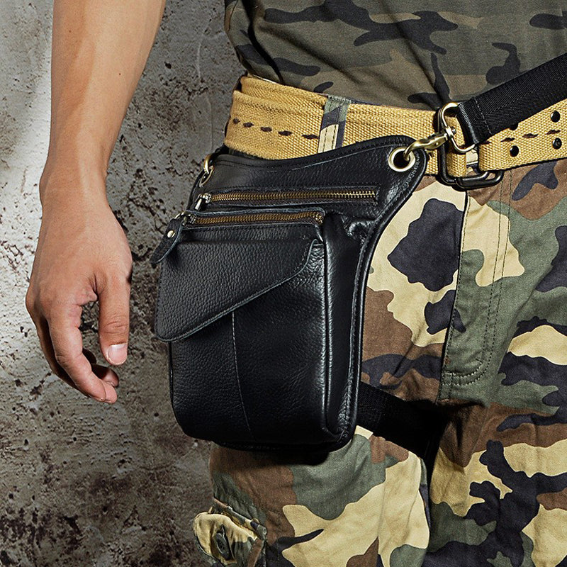 Black Leather Waist Drop Leg Thigh Bag Outdoor Motorcycle Thigh Bag Biker Thigh Bag for Men